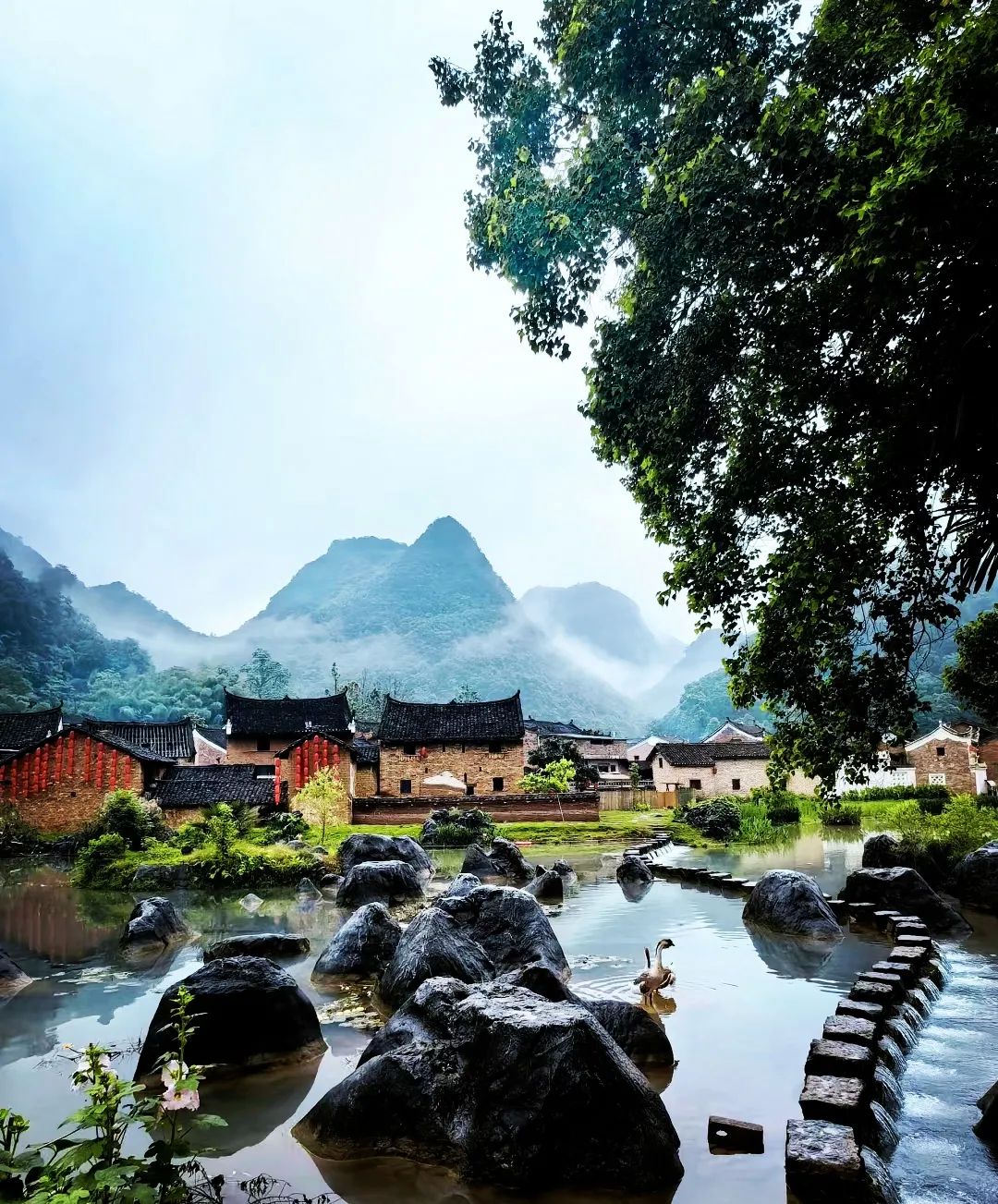 穿越千年的活化石古村!北宋延续至今的村落格局,文昌阁倒影月陂亭,步瀛桥头看渔翁撒网,清晨薄雾时分,拍摄水墨大片。