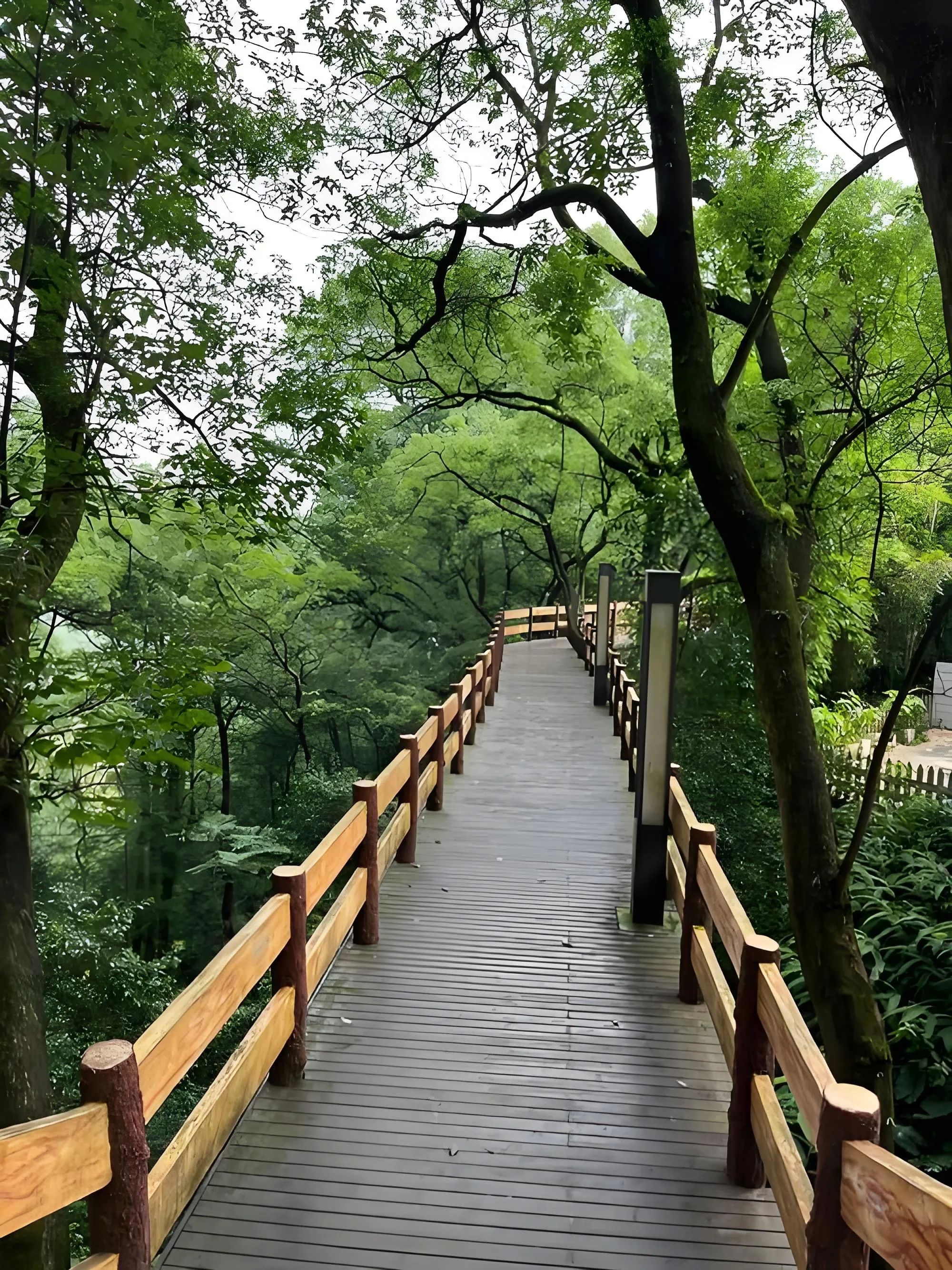 特色:林间石阶+溪流瀑布,树荫多不晒,适合亲子游