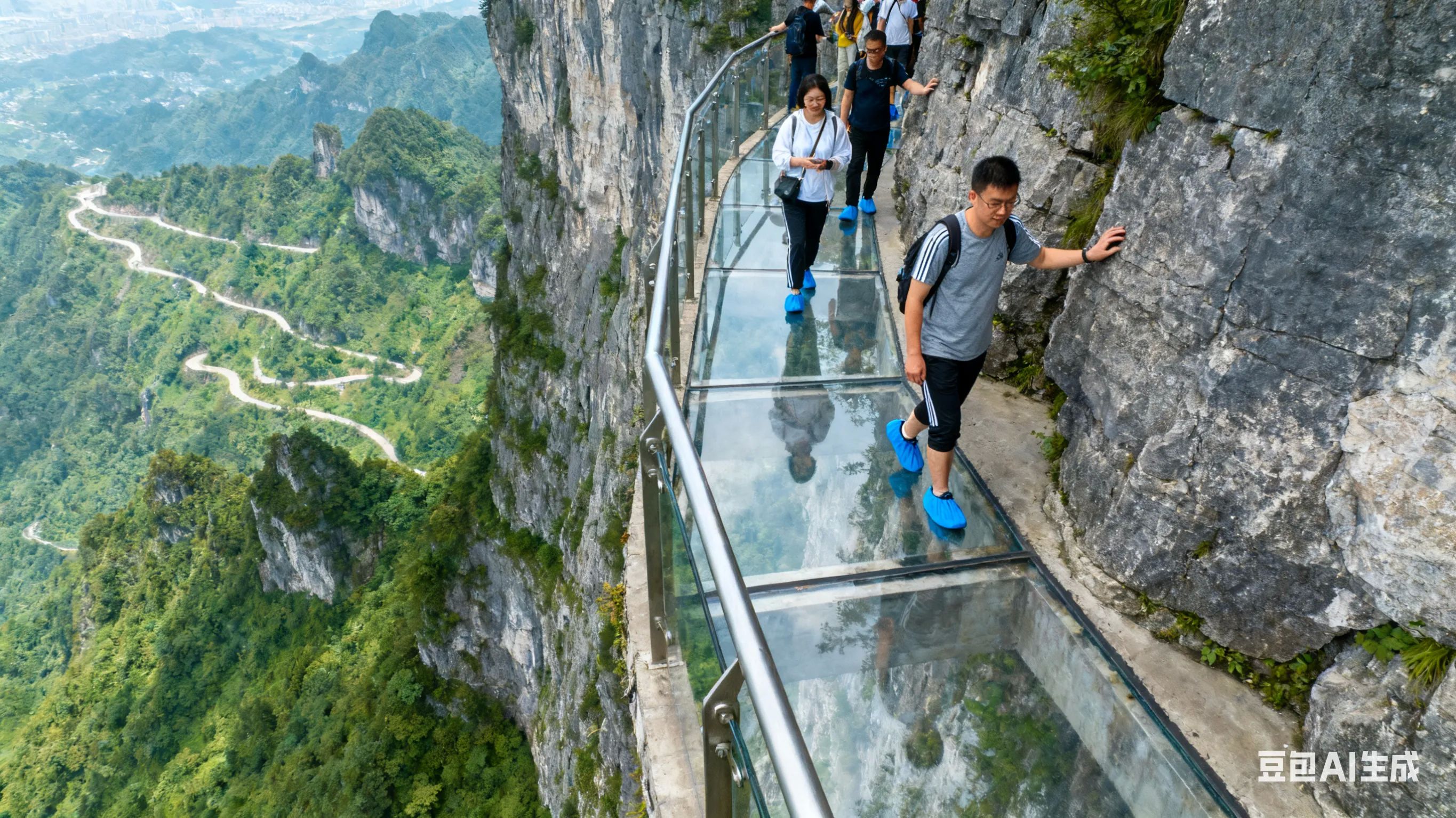 乘亚洲最长高山索道(28分钟)上山,先游西线:走玻璃栈道(租鞋套5元)、鬼谷栈道,打卡悬崖风光;再去天门山寺祈福,乘25元森林观光车至云梦仙顶(天门山制高点)俯瞰全城。