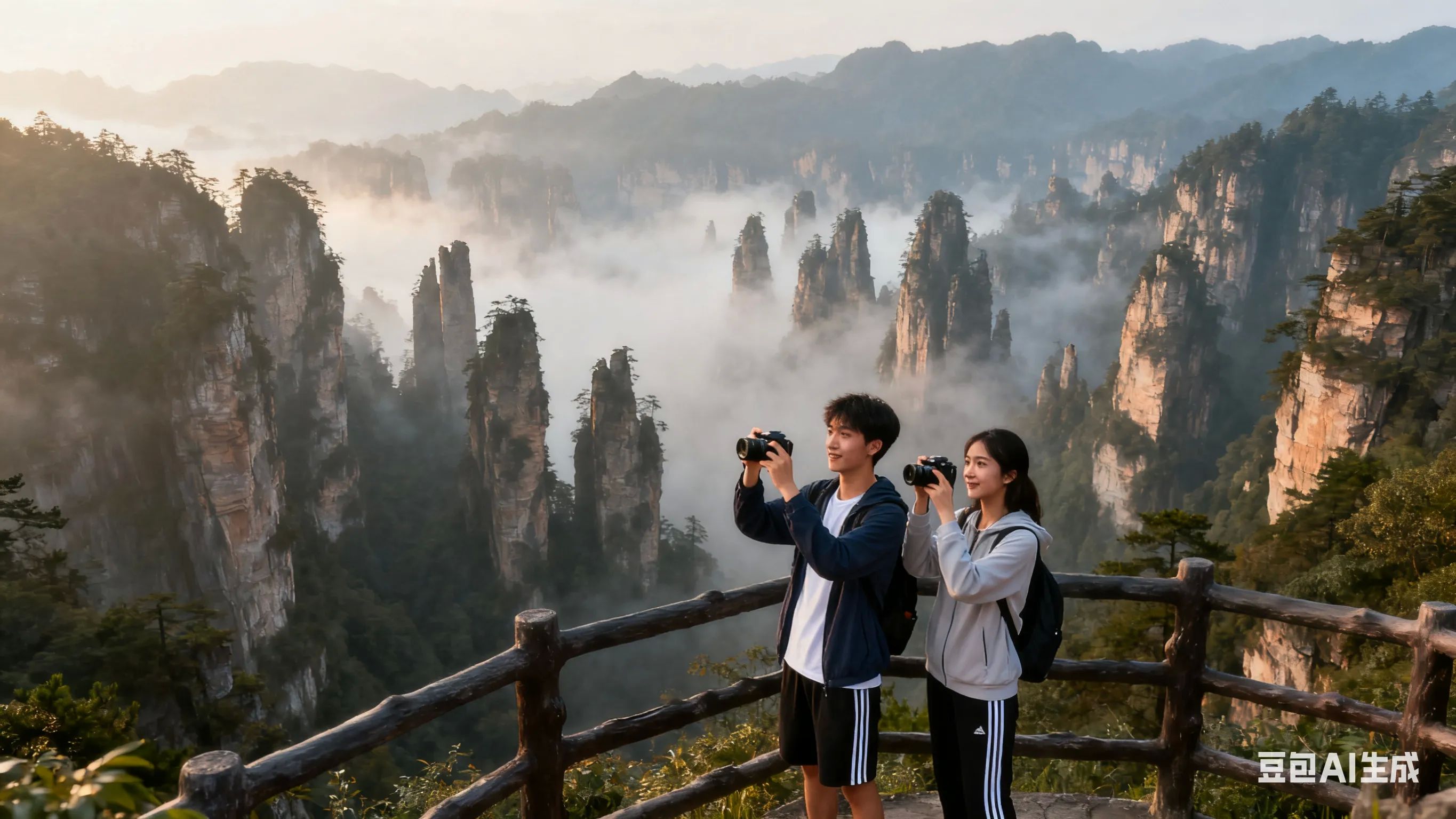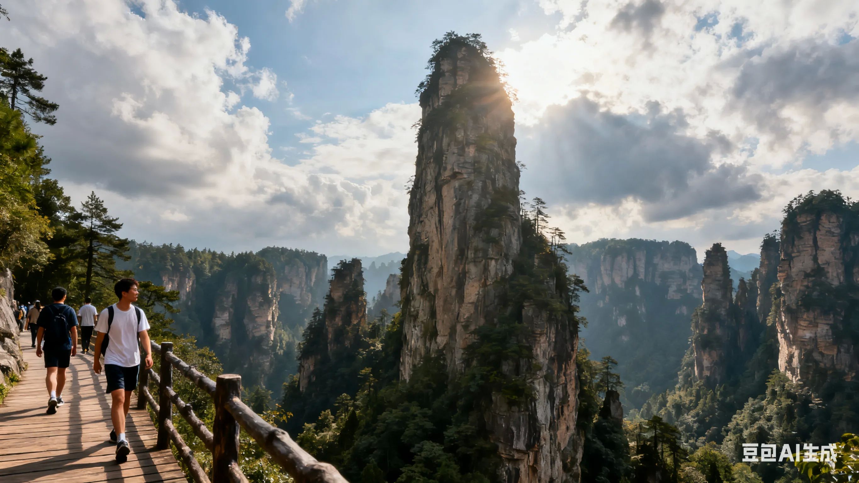乘环保车至袁家界,先在阿凡达餐厅用餐。重点游览「天下第一桥」「乾坤柱」(《阿凡达》哈利路亚山原型)、「迷魂台」,全程步行约2小时,注意看管随身物品防猴子打劫。