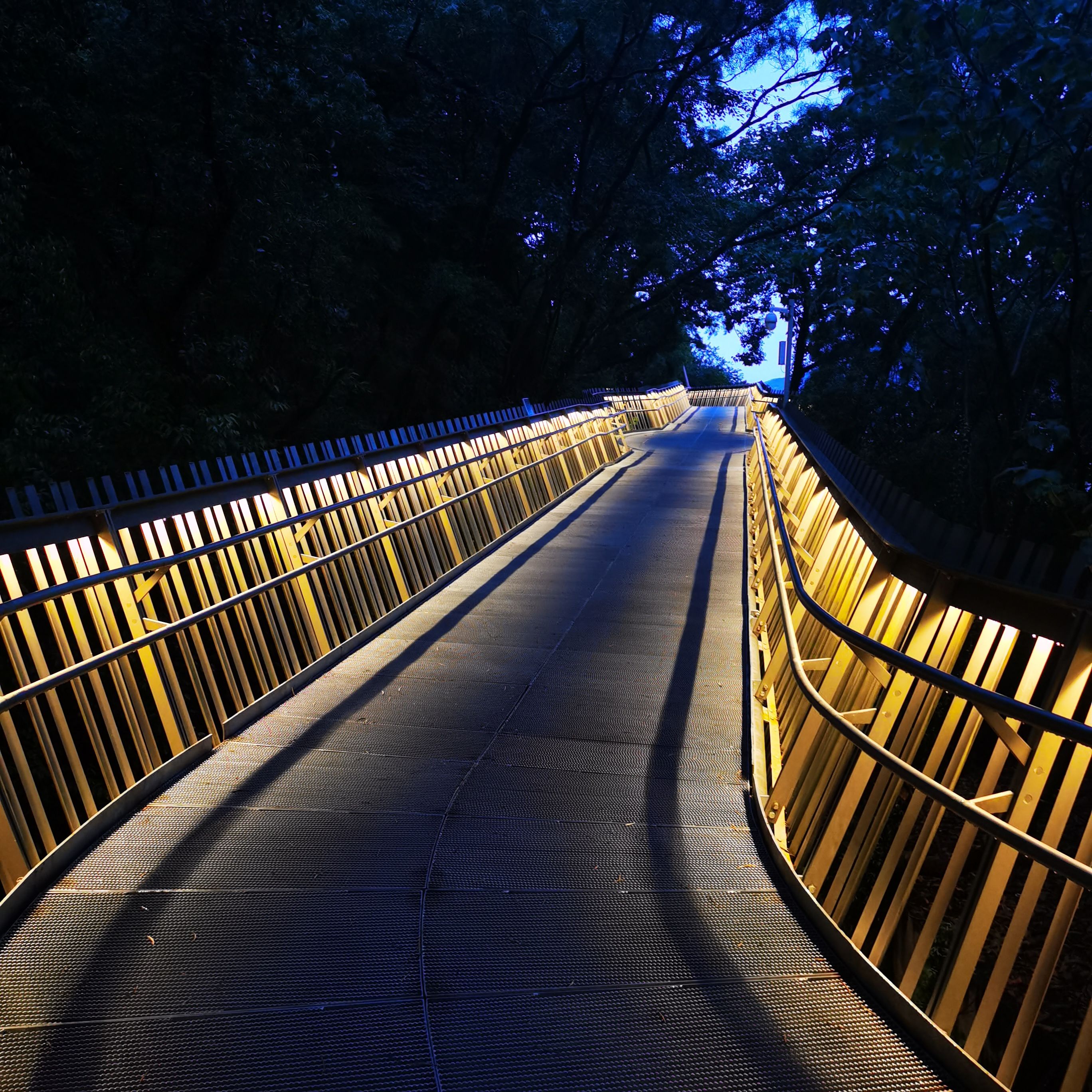 其实,福道最美的时刻就是晚上。大约晚上6.20,福道上的灯光都亮起来了。看上去真漂亮。因为我们已经下山差不多了,没能把山上最雄伟壮观和漂亮的场面拍照下来。好在还能拍照了一点点(13.14.15.16)。想象得出空中拍照,一定是一条金色的巨龙盘踞在三座大山的山体上,十分壮观吧。