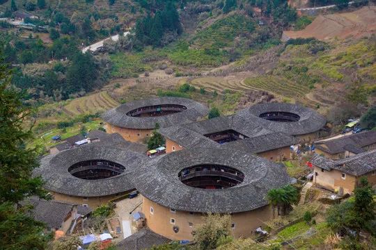- 田螺坑土楼群:位于漳州市南靖县书洋镇,是福建经典土楼形象代表。四座圆形土楼和一座正方形土楼紧密相连,形似“四菜一汤”,土楼建筑风格独特,具有浓厚的客家文化底蕴。