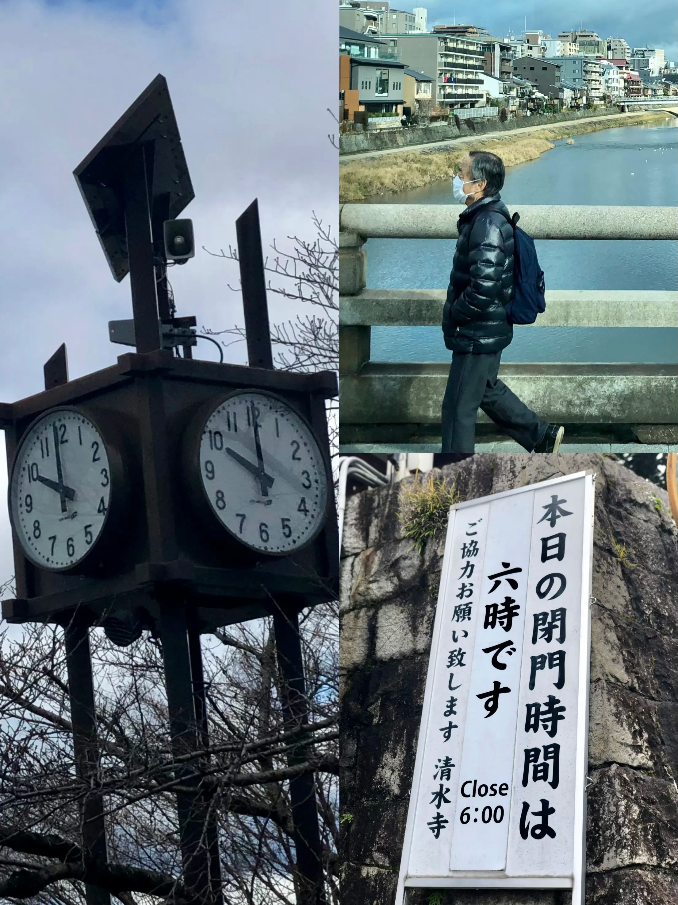 我们沿着长长的斜坡走向清水寺,门口竖立着6:00关门的牌子。