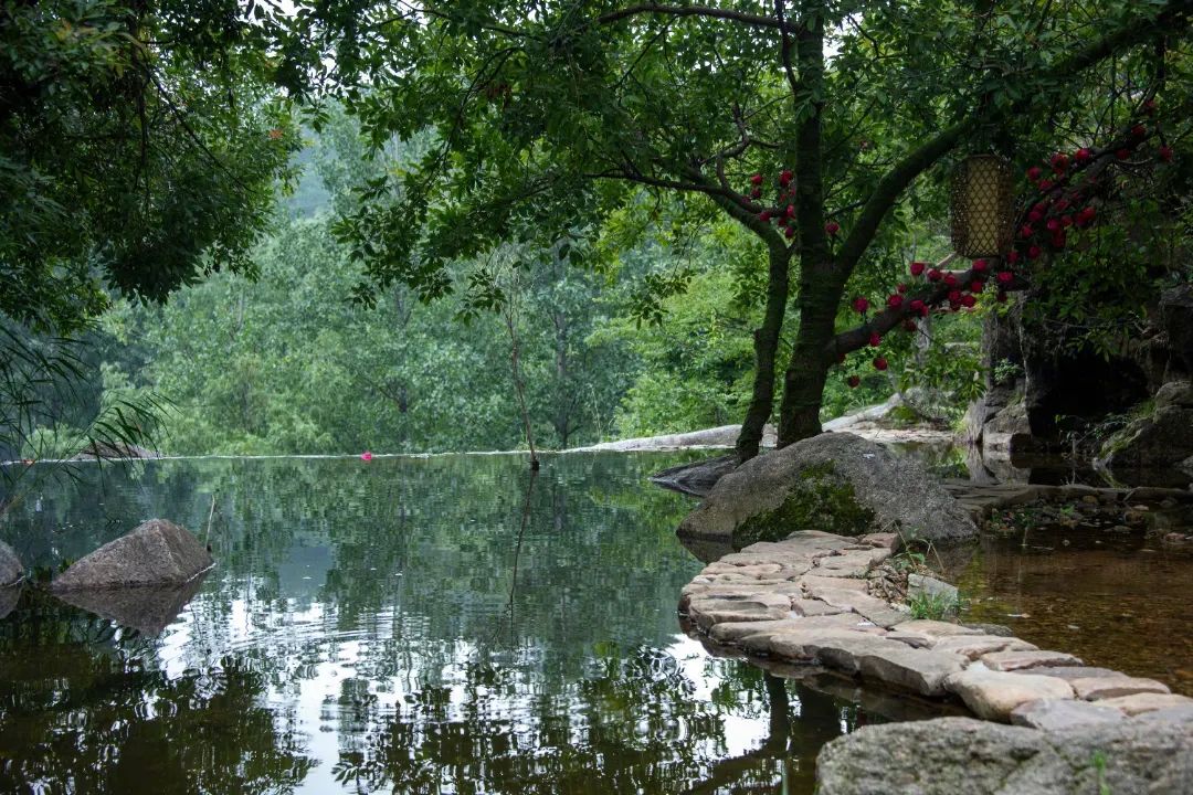 位于焦作市修武县,这里有“三步一泉、五步一瀑、十步一潭”的灵秀景观。夏季丰水期,高瀑如银河倒泻,红石峡的丹霞碧水间凉气裹挟着水雾扑面而来。