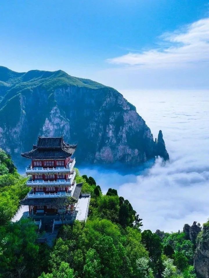 位于南阳市南召县,夏季主峰清凉宜人,山间溪流飞瀑与千年古观相映成趣,沿着登山步道拾级而上,沿途可见猕猴嬉戏,登顶后俯瞰云海翻涌,恍若仙境。
