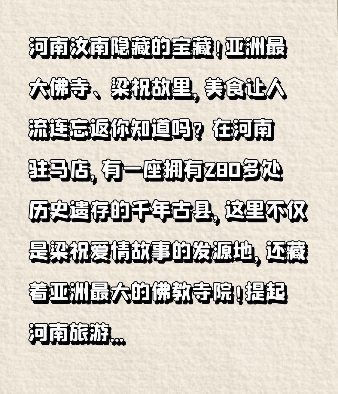 你知道吗?在河南驻马店,有一座拥有280多处历史遗存的千年古县,这里不仅是梁祝爱情故事的发源地,还藏着亚洲最大的佛教寺院!