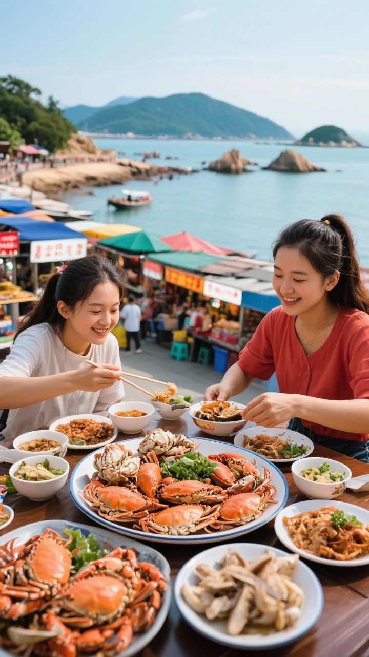 别在景区吃!出园后去【滨海路小吃街】或本地餐馆: