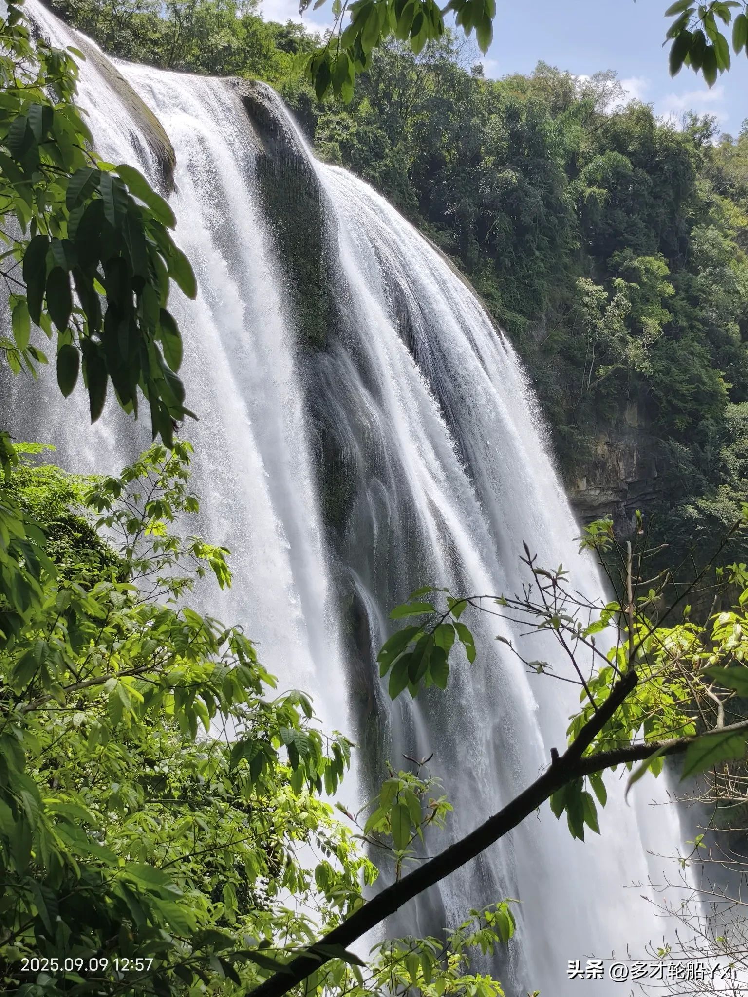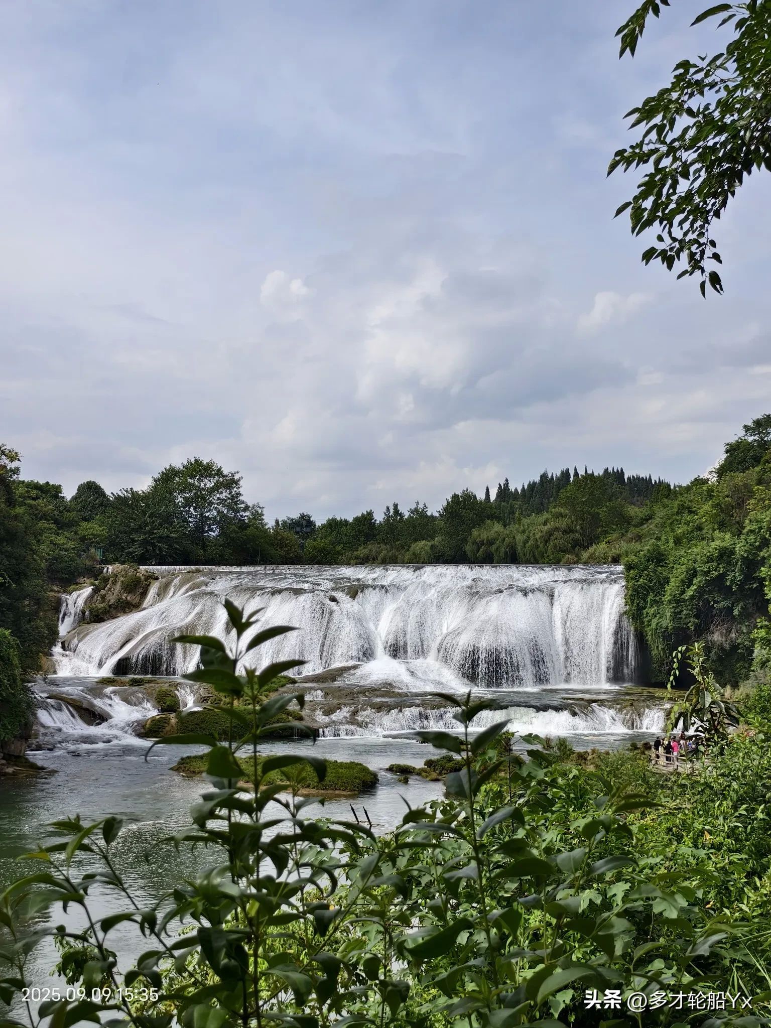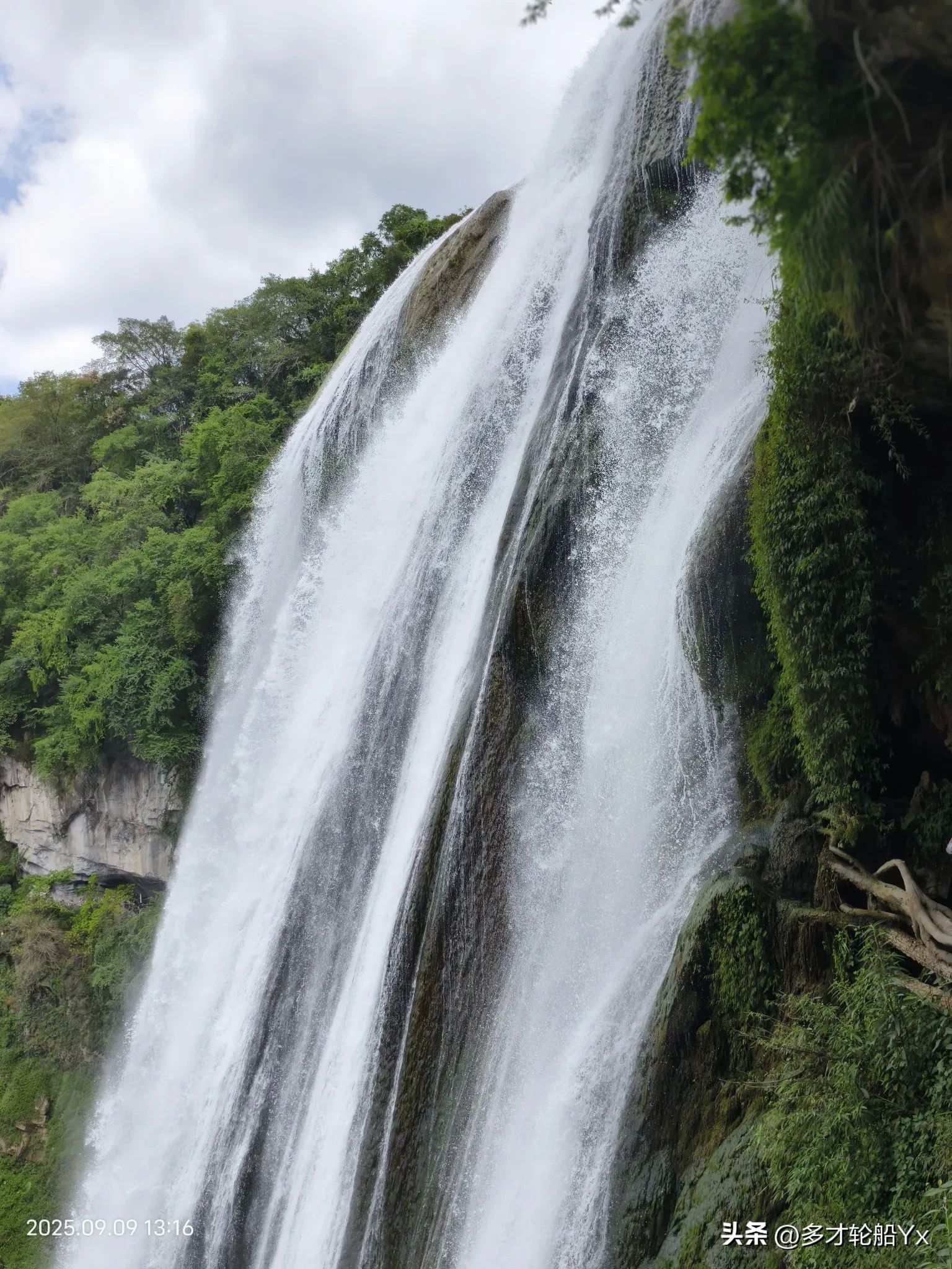 说黄果树瀑布是澎湃之美,那陡坡塘则是壮阔之美,两个景点都是西游记的取景地。陡坡塘是宽帘瀑布,宽阔的水帘在阳光的照耀下银光闪闪,周边树木郁郁葱葱,显得瀑布更有生命力。水流奔腾溅起如雪水花,如雷的声响使人流连忘返。