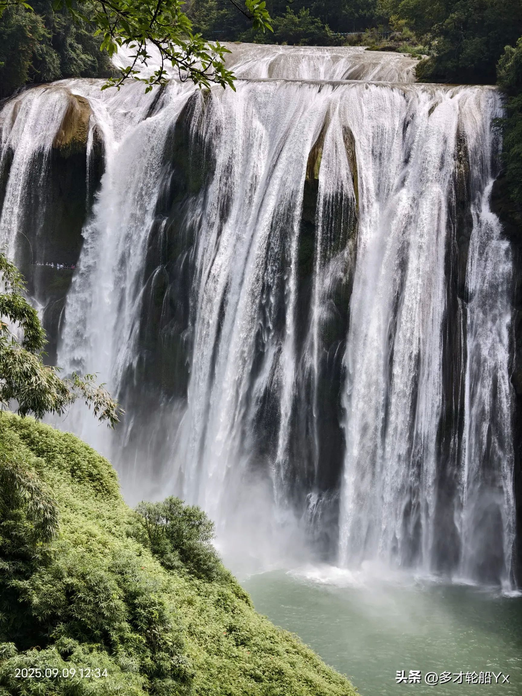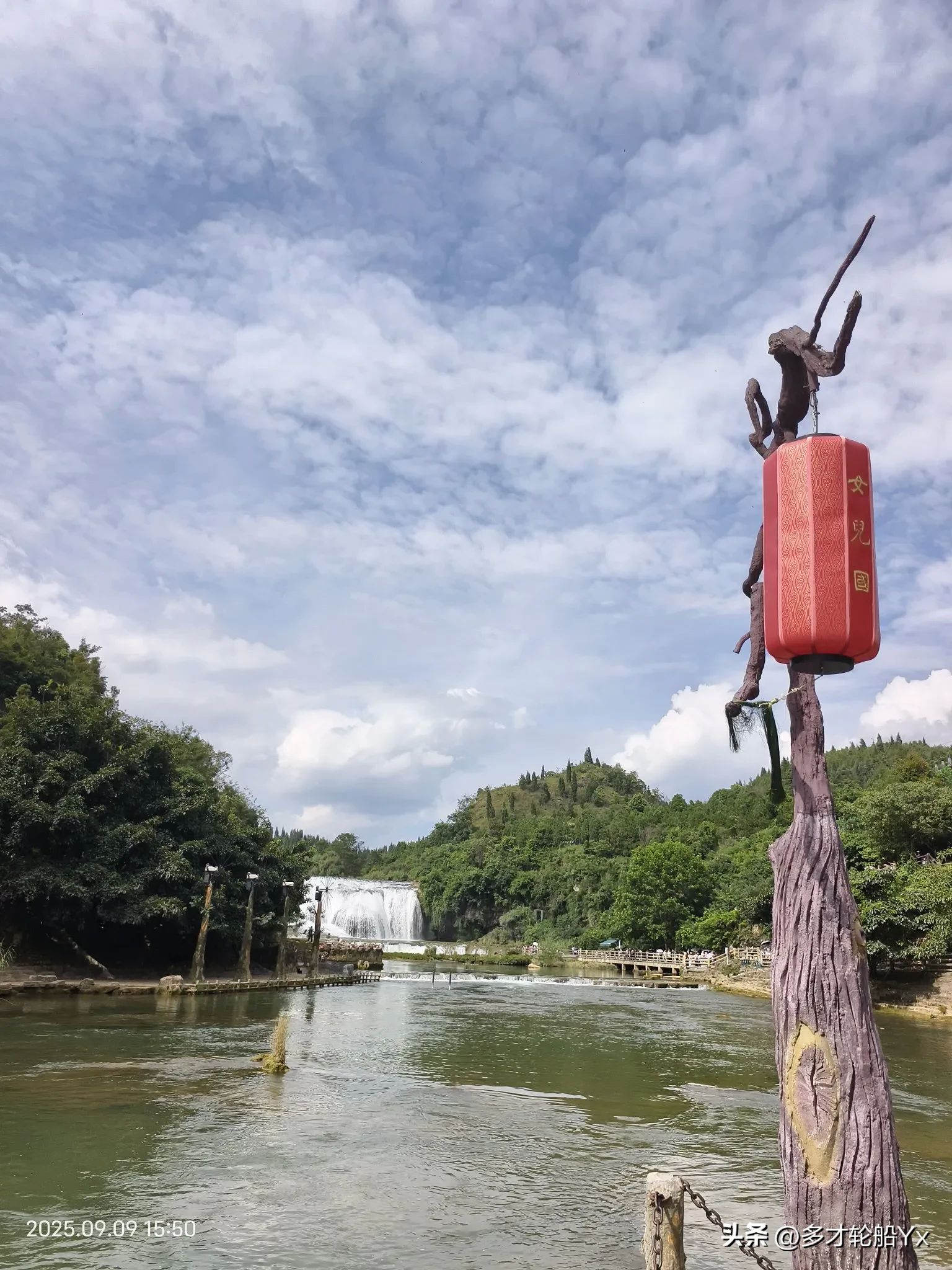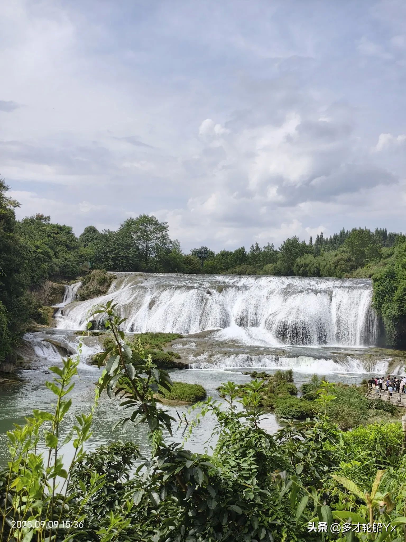 说黄果树瀑布是澎湃之美,那陡坡塘则是壮阔之美,两个景点都是西游记的取景地。陡坡塘是宽帘瀑布,宽阔的水帘在阳光的照耀下银光闪闪,周边树木郁郁葱葱,显得瀑布更有生命力。水流奔腾溅起如雪水花,如雷的声响使人流连忘返。