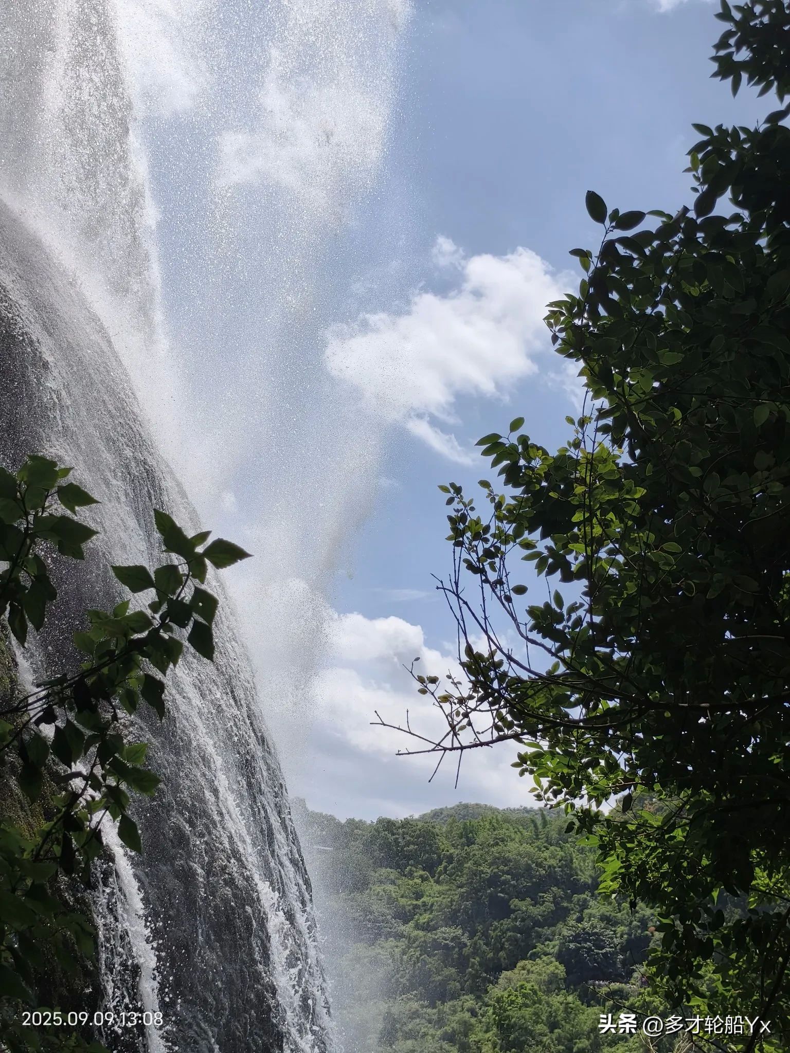在边拍边走间,瀑布便出现在眼前。各种感叹声不绝于耳。瀑布从悬崖之上倾泻而下,仿佛一幅巨大的水帘,激起千丈水花,气势磅礴,场面壮观。无论从哪个角度取景,都能领略到它的澎湃之美。站在瀑布观景台,你不仅能溅到细细的水花,更能听到瀑布重重落下的澎澎水声,这种澎湃的力量,让你很想高歌或赞叹大自然之美!