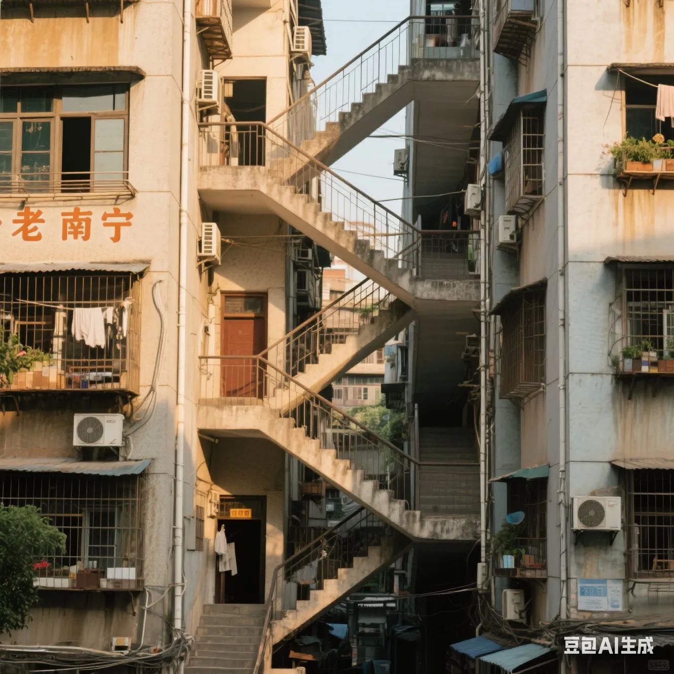 鸳鸯楼:位于唐山路的鸳鸯楼,建于上世纪八十年代。交错的双向楼梯连接着两栋居民楼,满满的“老南宁”生活气息,复古文艺风拉满,超级适合拍王家卫电影感的大片。