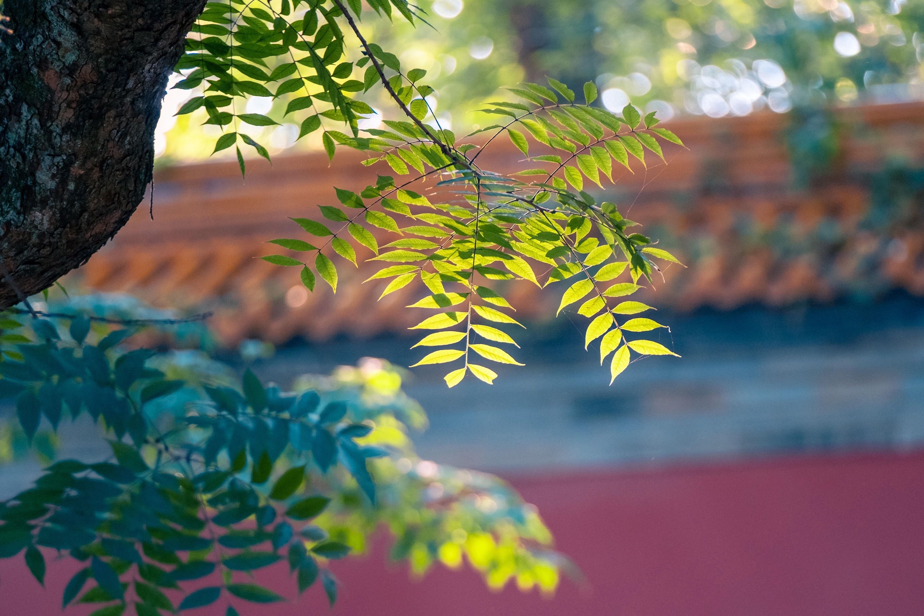 • 红墙绿叶的完美构图,穿上汉服随便拍都超美
