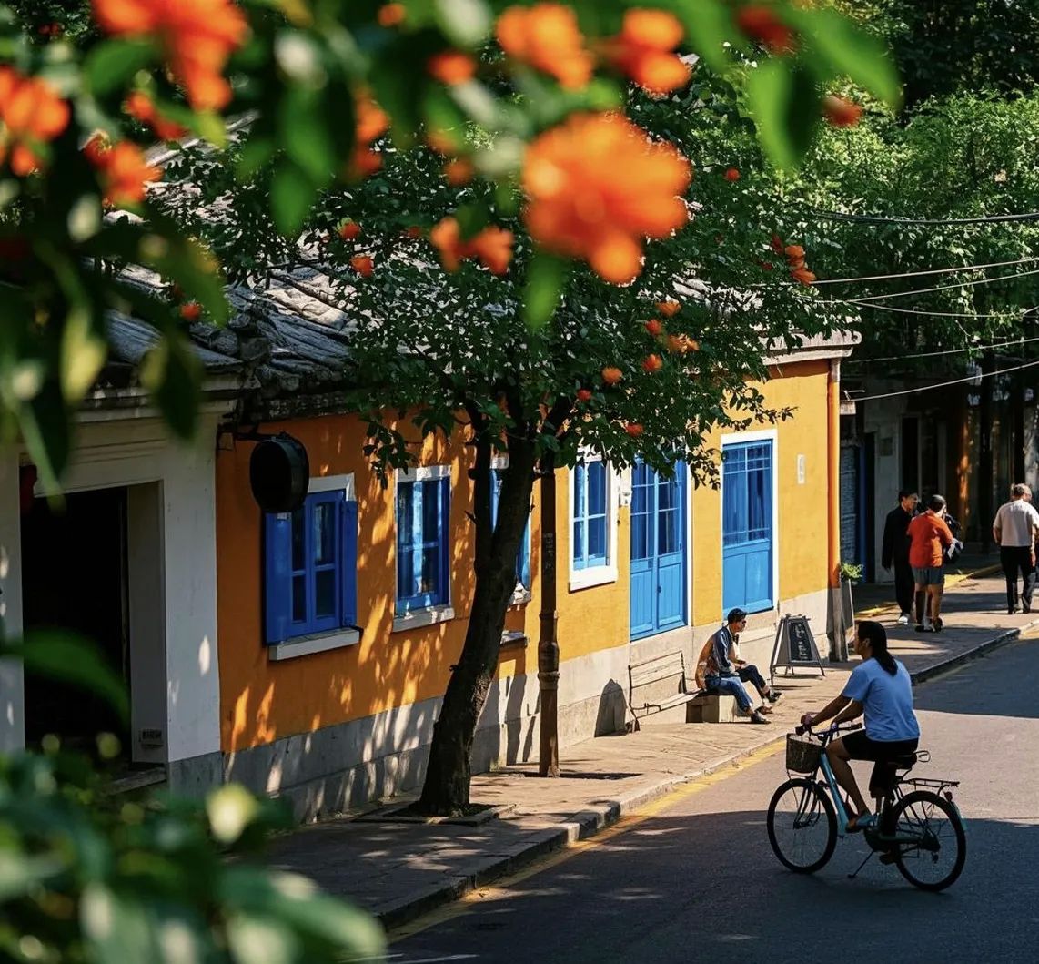 翻新后的昙华林更像“武汉鼓浪屿”:半山小洋房、涂鸦阶梯、猫咖书店错落有致。推荐“小昙昙邮局”买张武汉方言明信片(盖12枚特色章),再到“边渡咖啡”三楼露台,点一杯“樱花拿铁”,俯瞰青瓦街巷与远处黄鹤楼同框。
