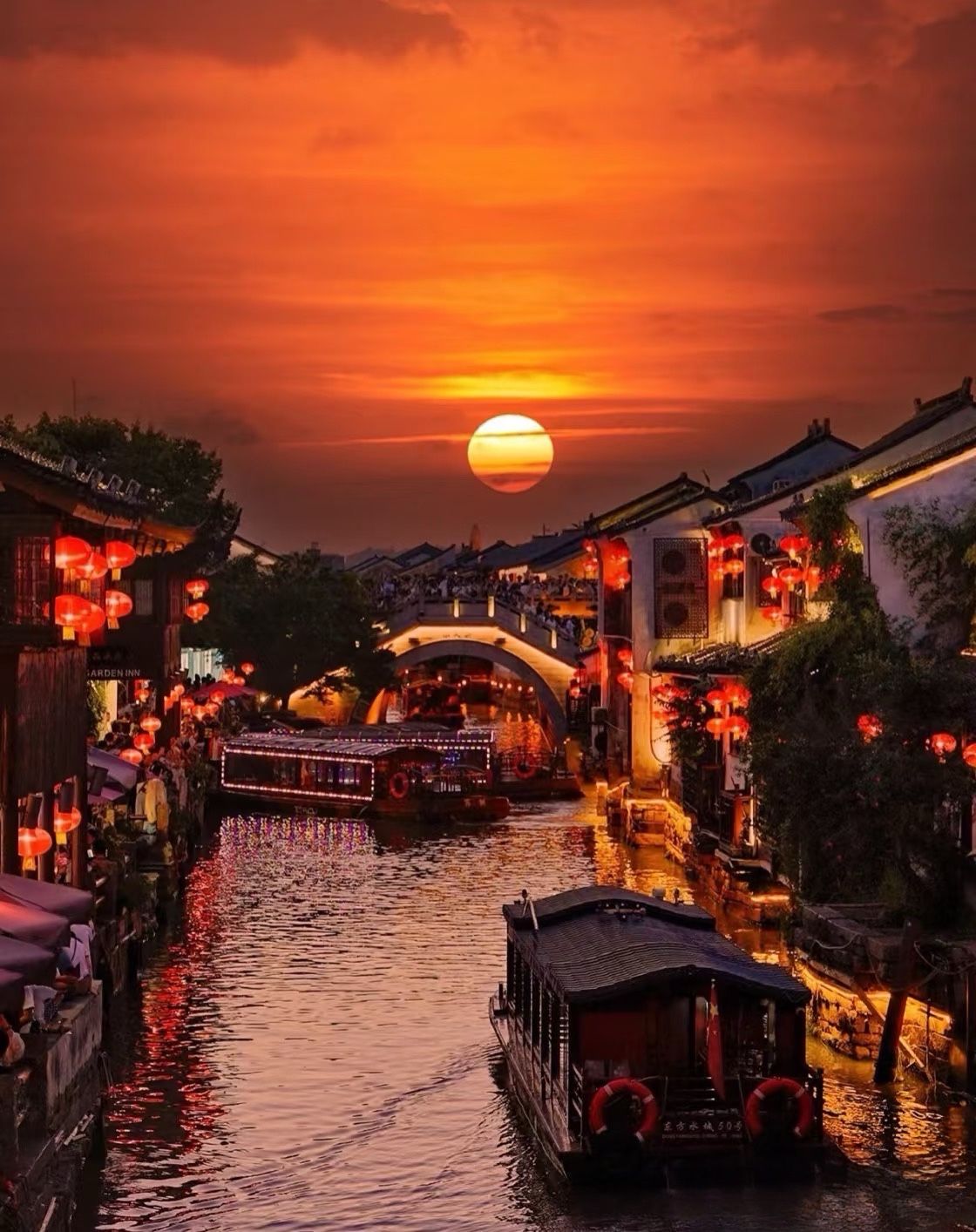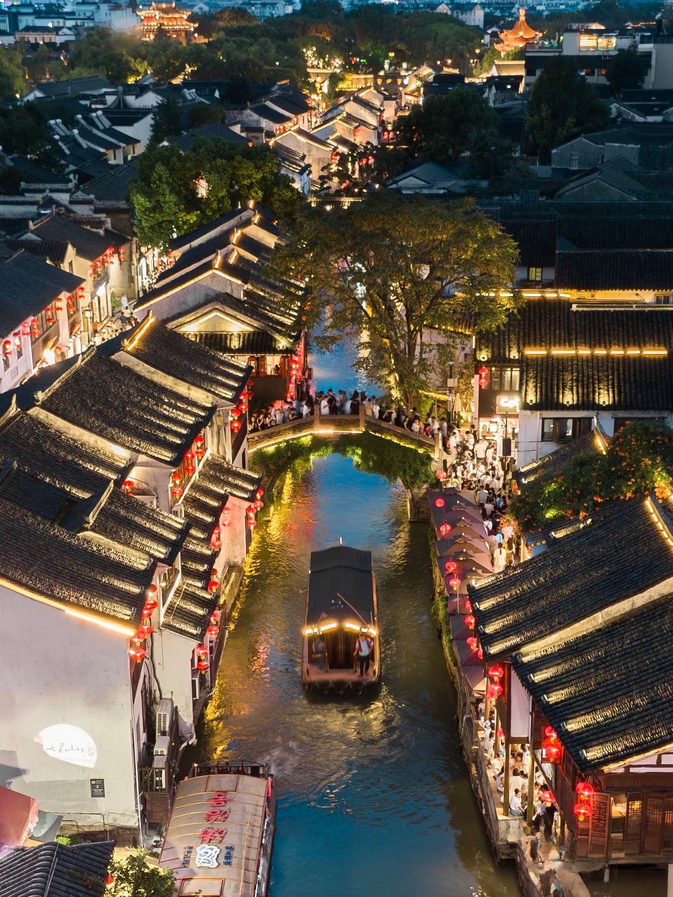 山塘街一定要晚上来,大约 6:30 左右,灯光亮起,整个街道宛如华灯初上的画卷。坐在小河边,听一曲“青砖伴瓦漆,白马踏新泥”的吴侬软语评弹,那婉转的调调,酥到骨子里。