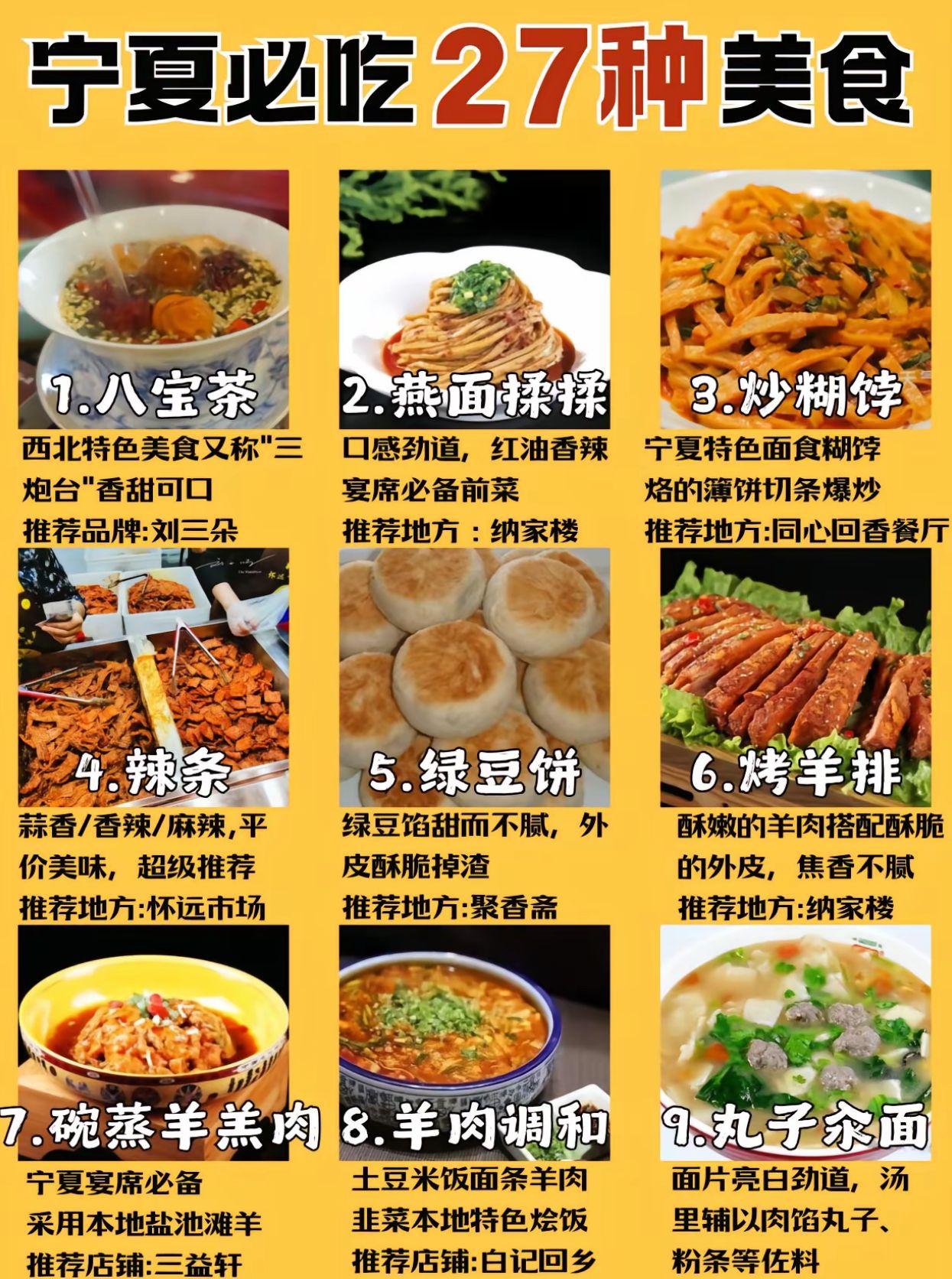 · 傍晚/晚上:在银川购买枸杞、八宝茶等特产,结束旅程。