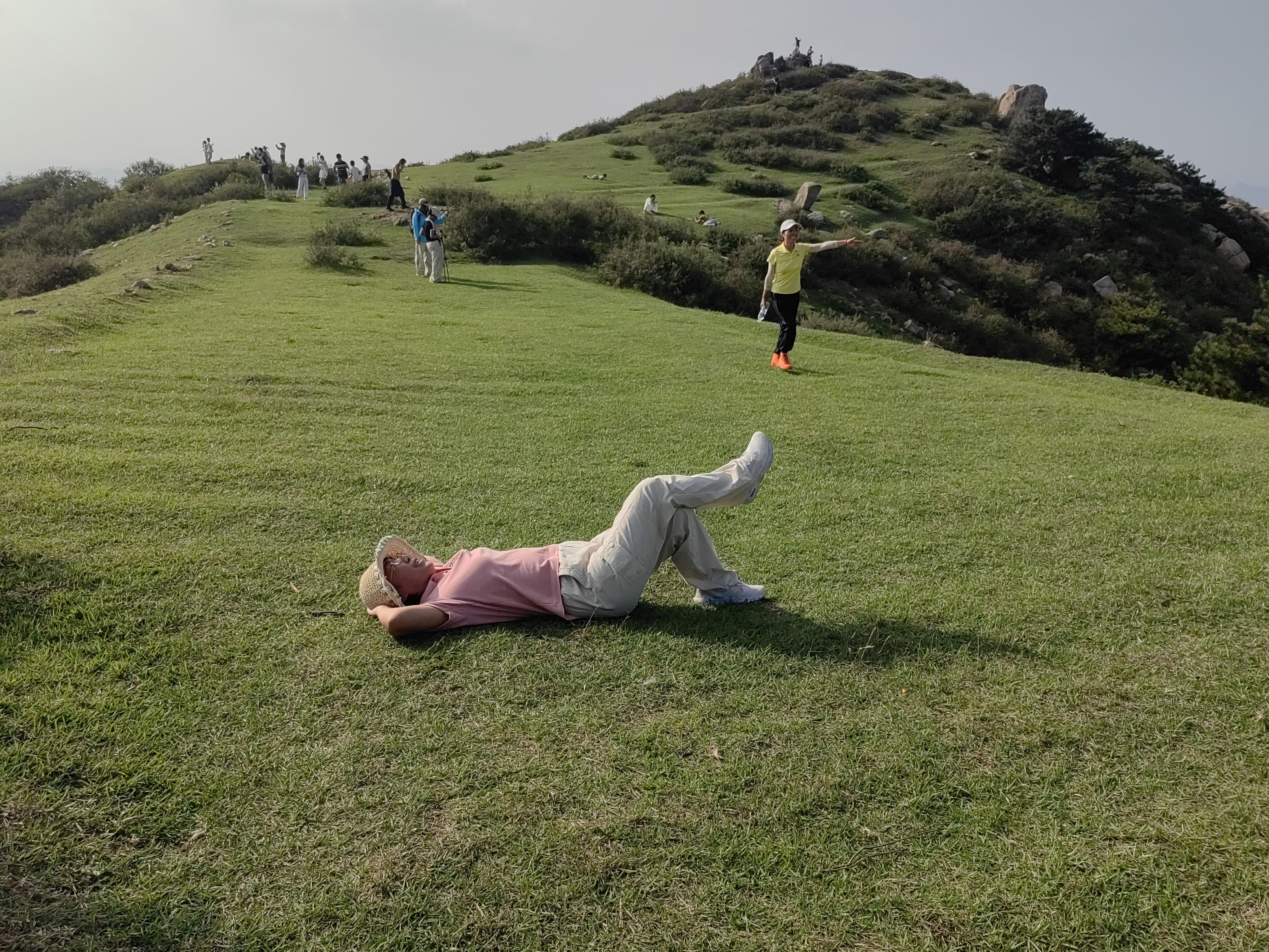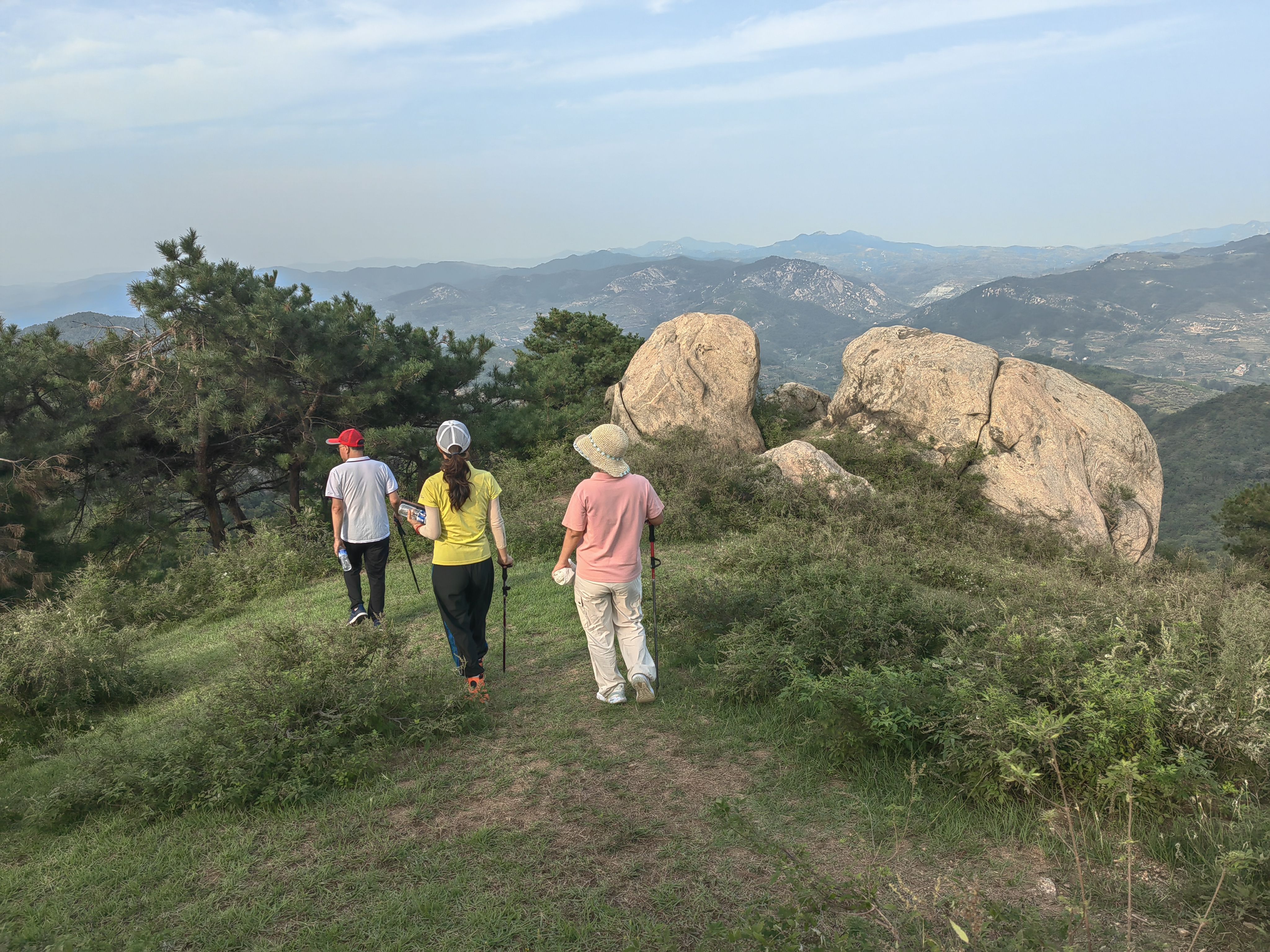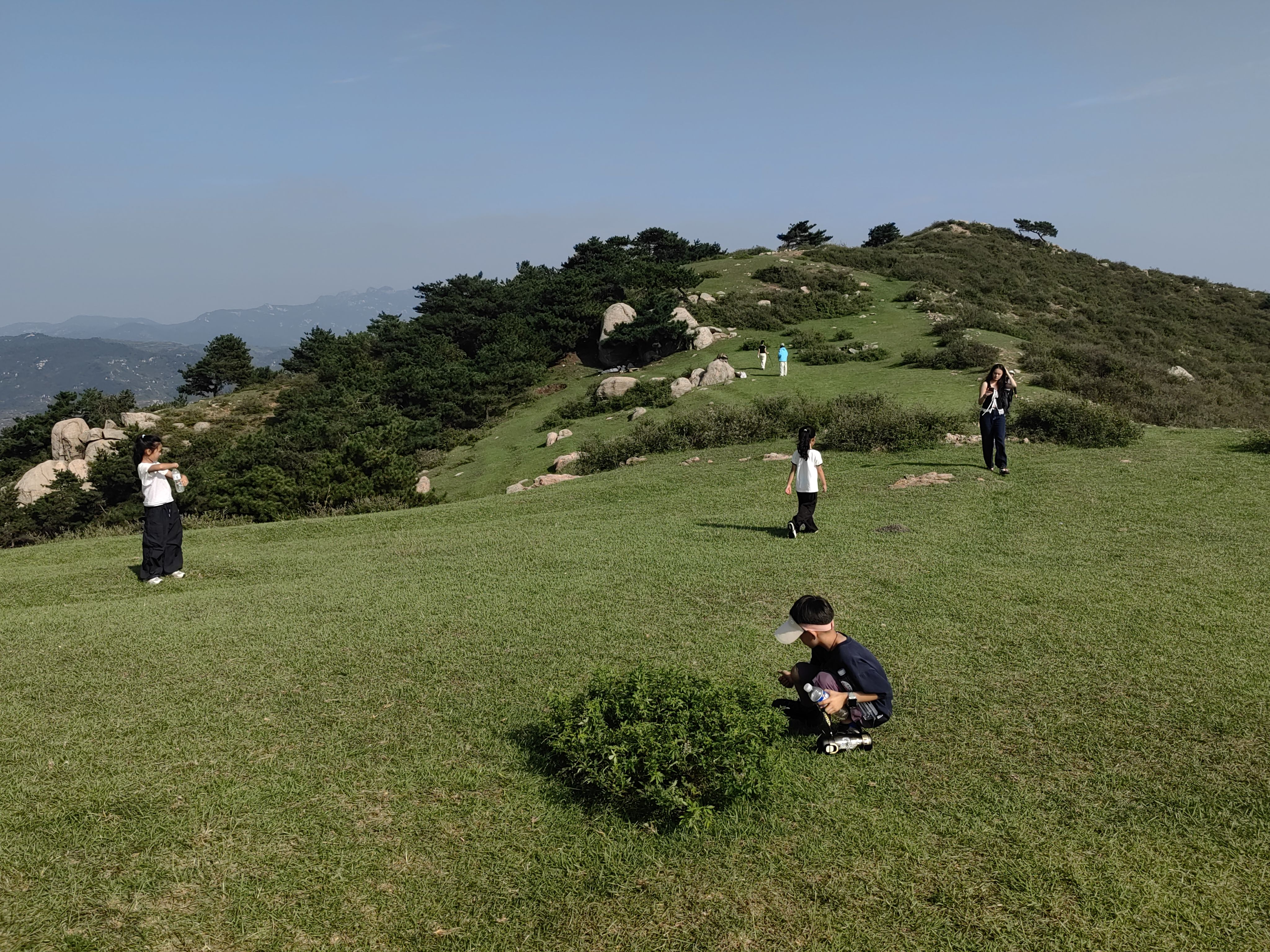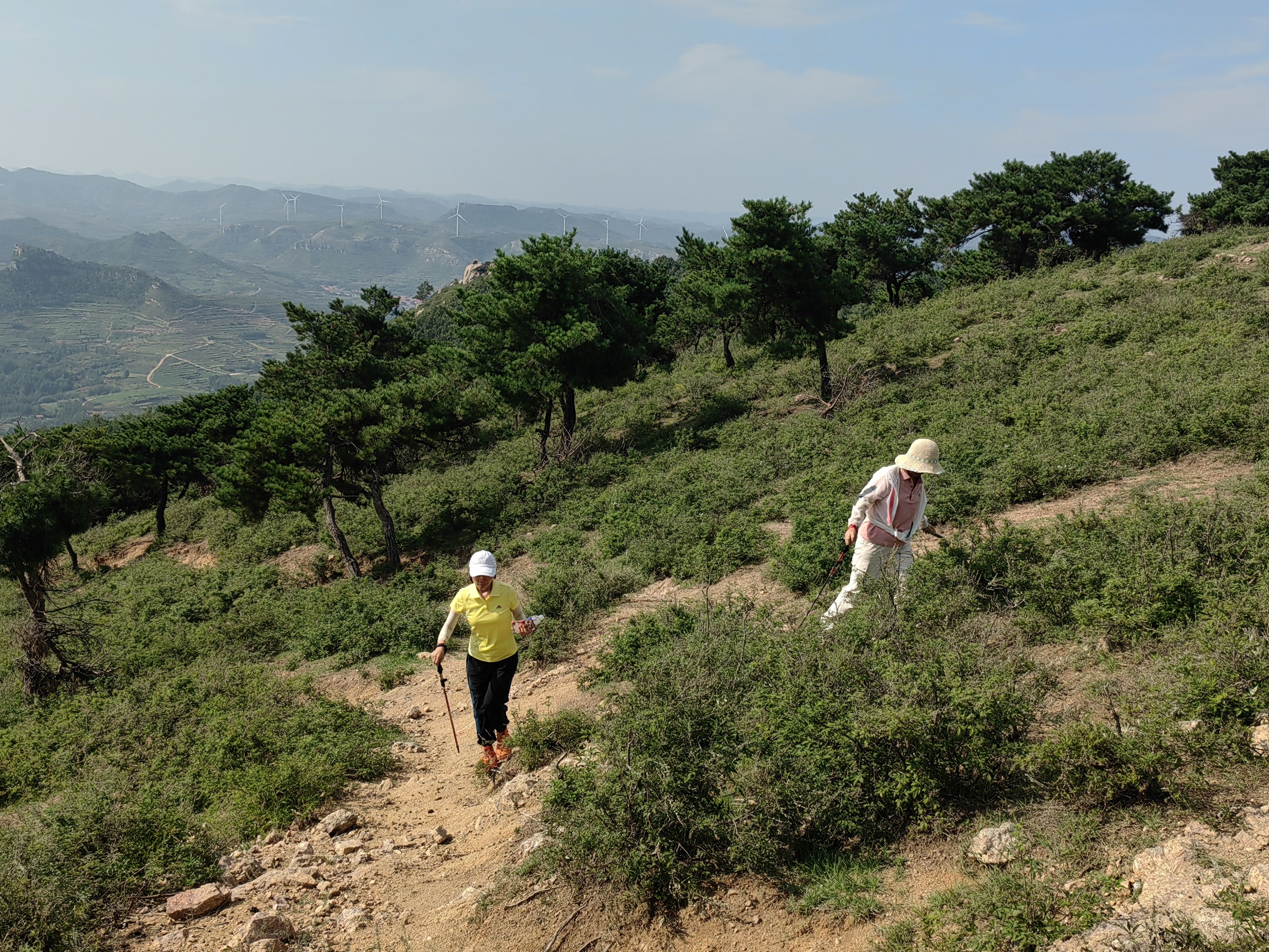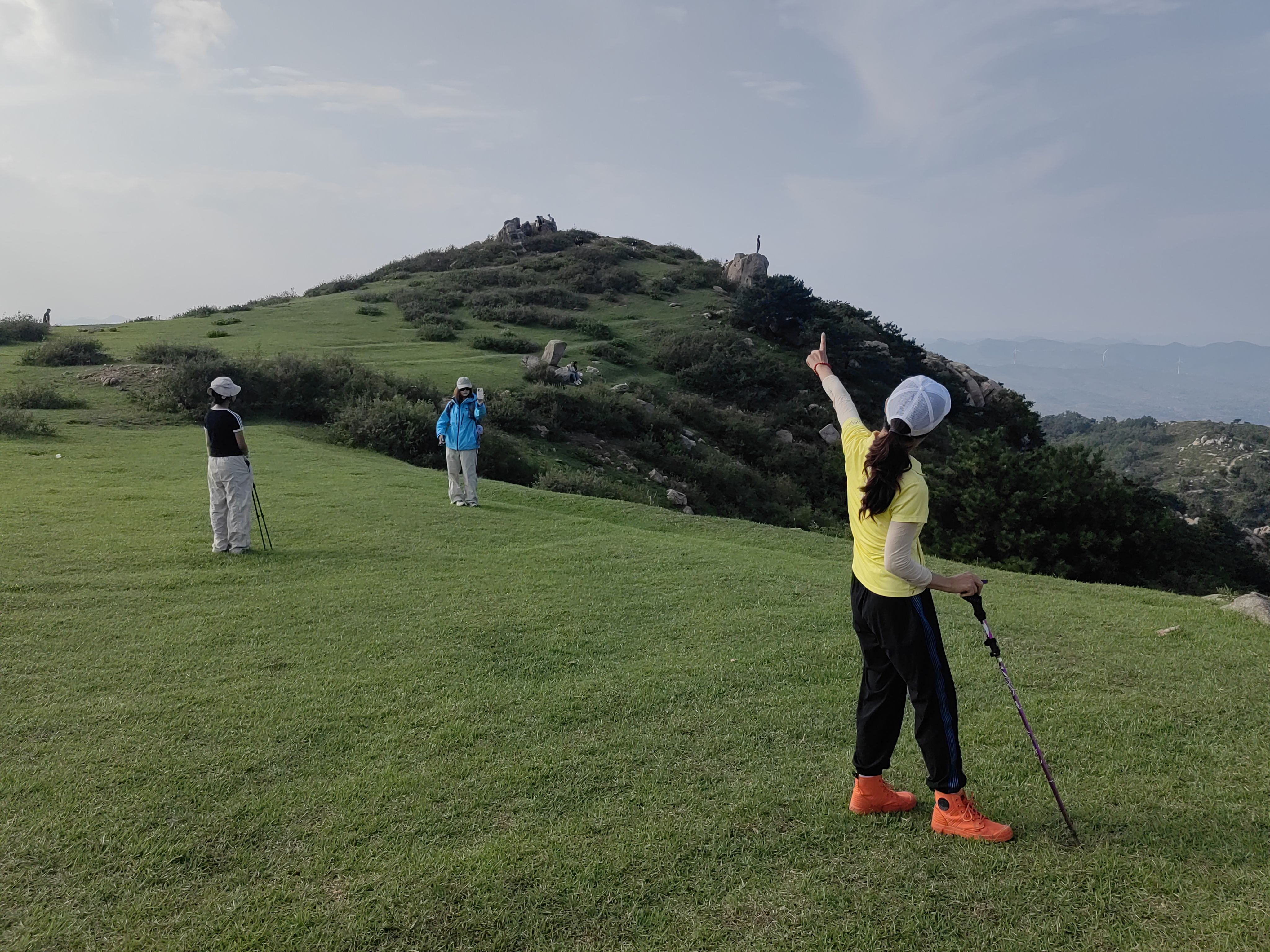 从停车处上行,有明显小路,过一户农家,爬升不大,穿过小片松林,即可到达山顶草原。步行大约30-40分钟。