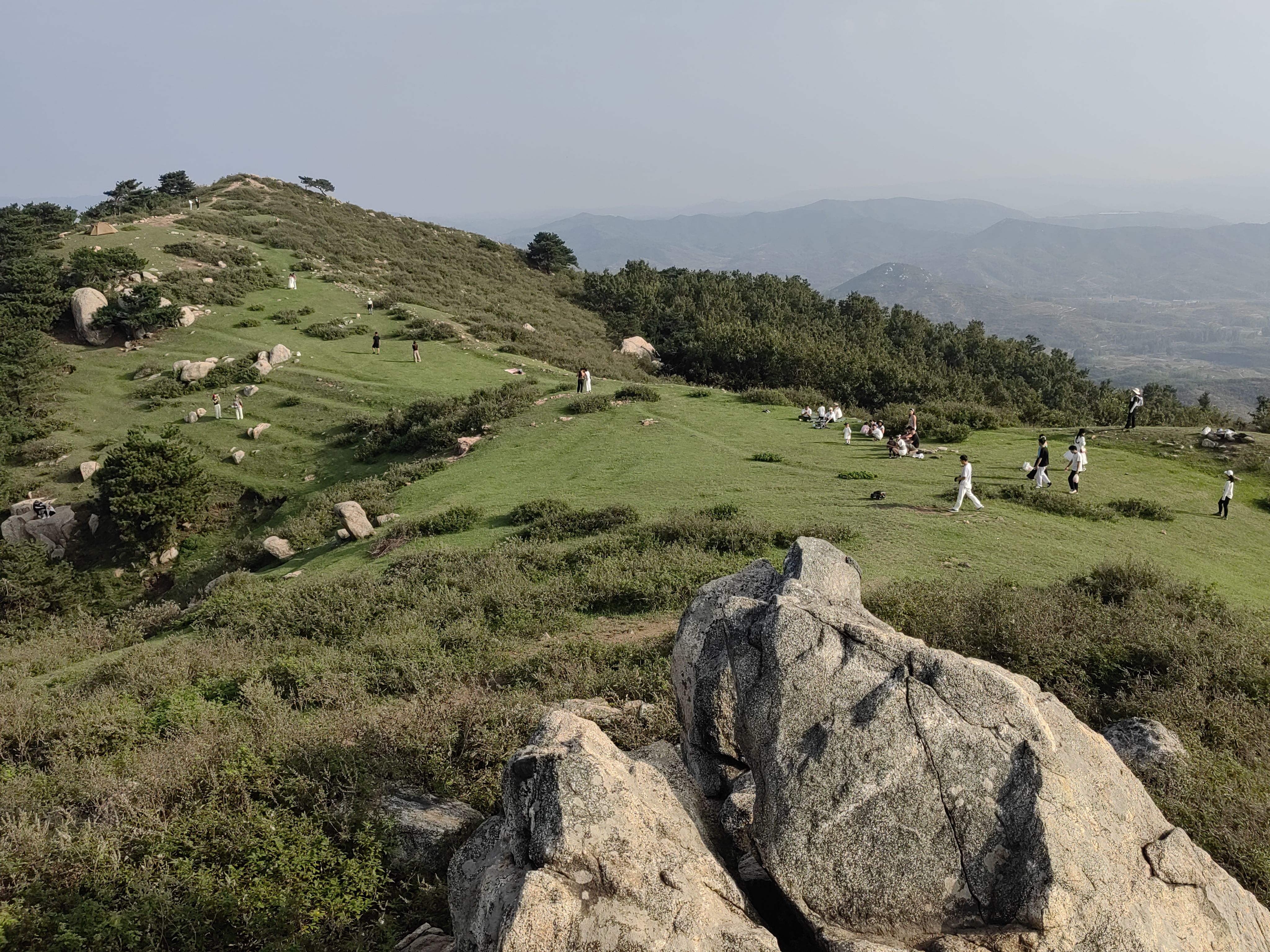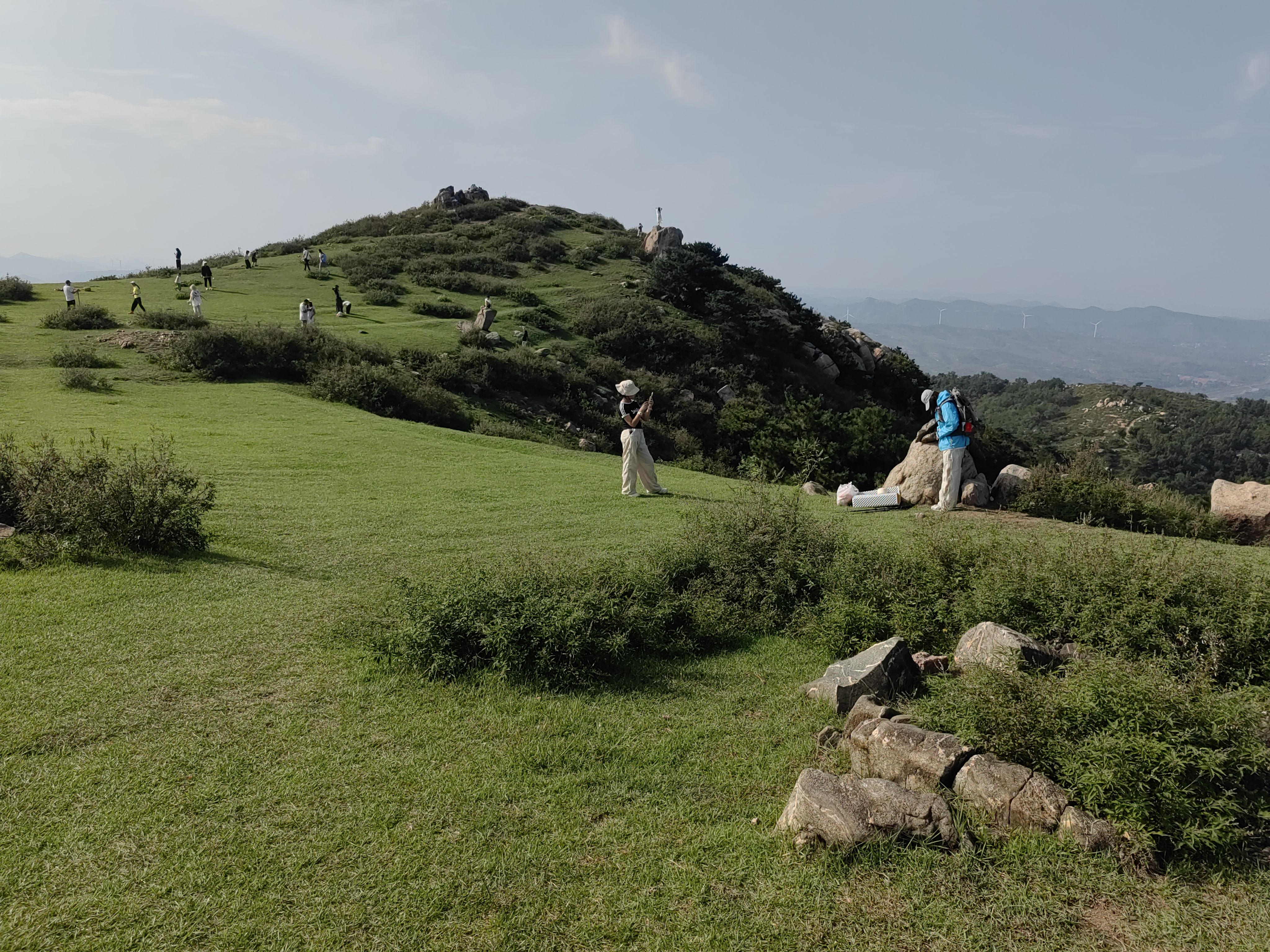 山顶大片的空中草原,随山势起伏,绿草如茵,间或裸露的岩石点缀,蓝天白云下,如果再遇到放牧的牛羊,犹如到了西北大草原,那景色,真叫一个美。