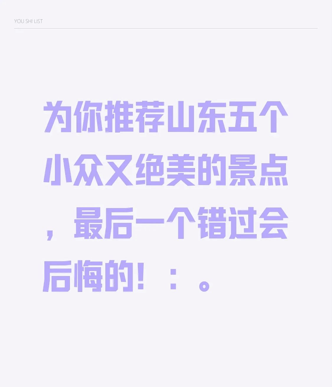 为你推荐山东五个小众又绝美的景点,最后一个错过会后悔的!#烟台游玩打卡地# #山东游玩景点# #潍坊一日游# #临沂一日游,哪里有好玩的?# #淄博烧烤有多香# #山东小众打卡地# :