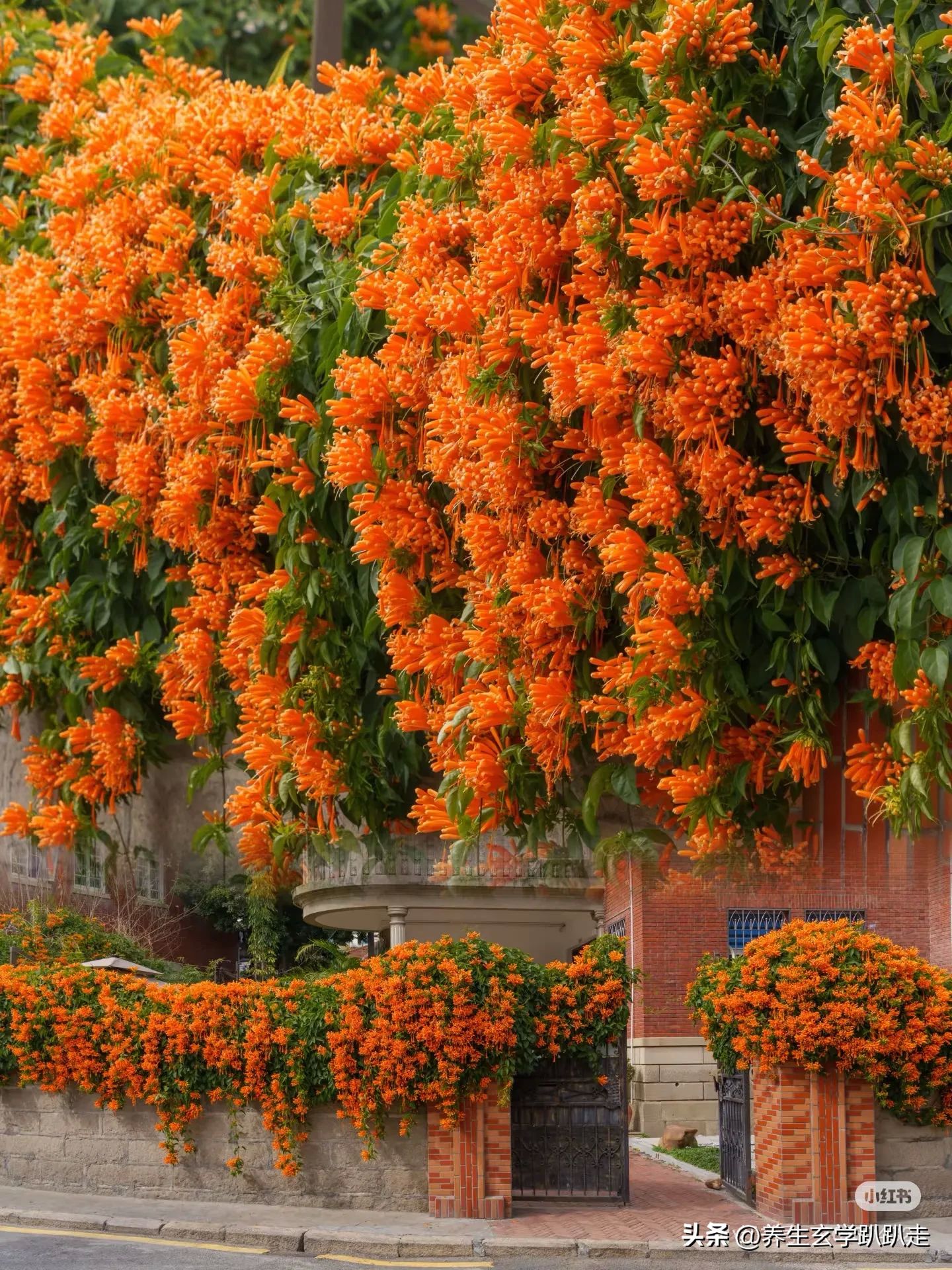 • 华新路(思明区华新路):炮仗花爬满老别墅的墙头,橙红色的花朵与充满历史韵味的老别墅相互映衬,文艺气息扑面而来。