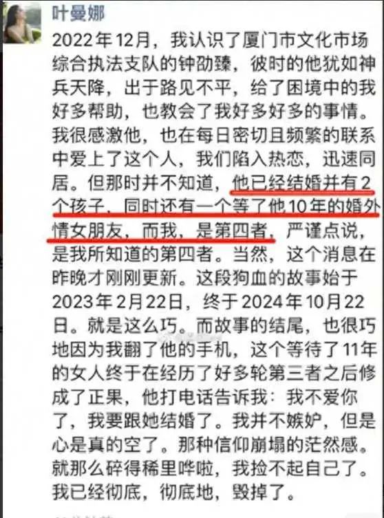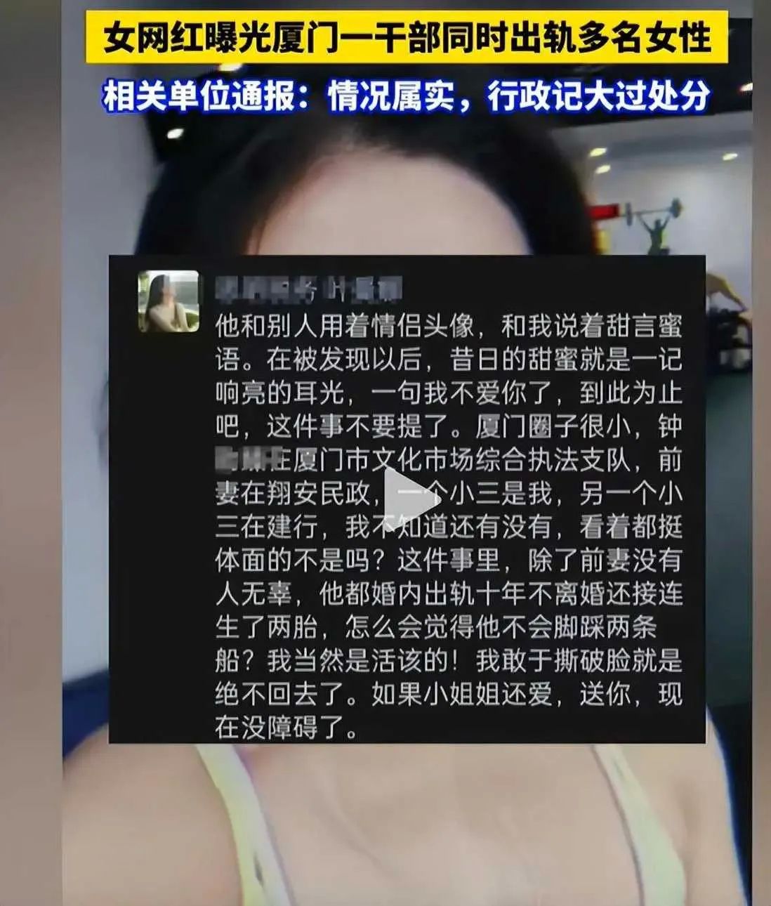 在这场风波里,还牵扯出了一位名叫叶曼娜的女子。她毕业于中央财经大学,在思明区税务局工作,是重点培养的年轻干部,还担任着“厦门市思明区理论宣讲轻骑兵”的角色,平日里形象良好。可如今,因为这档子事,她与这位文旅局干部的关系也彻底闹僵了。