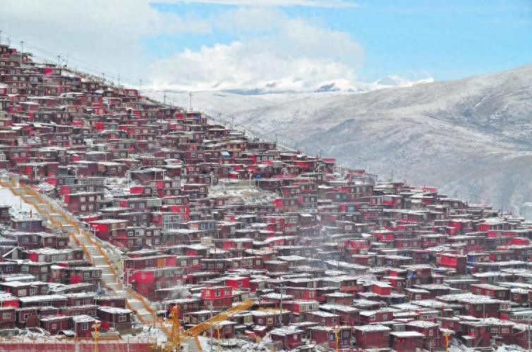 历史悠久的色达有着浓厚的宗教色彩,而色达五明佛学院就像色达的一匹金马,隐藏在深山中。数千间赫红的大屋,簇拥着金碧辉煌的大殿,在蓝天碧云下显得格外壮观。