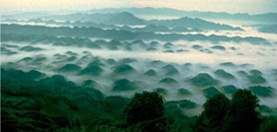 雨天,云缠雾绕,溟溟朦朦,竹影婆娑,如墨似画。李鹏总理题词:“蜀南竹海天下翠。"