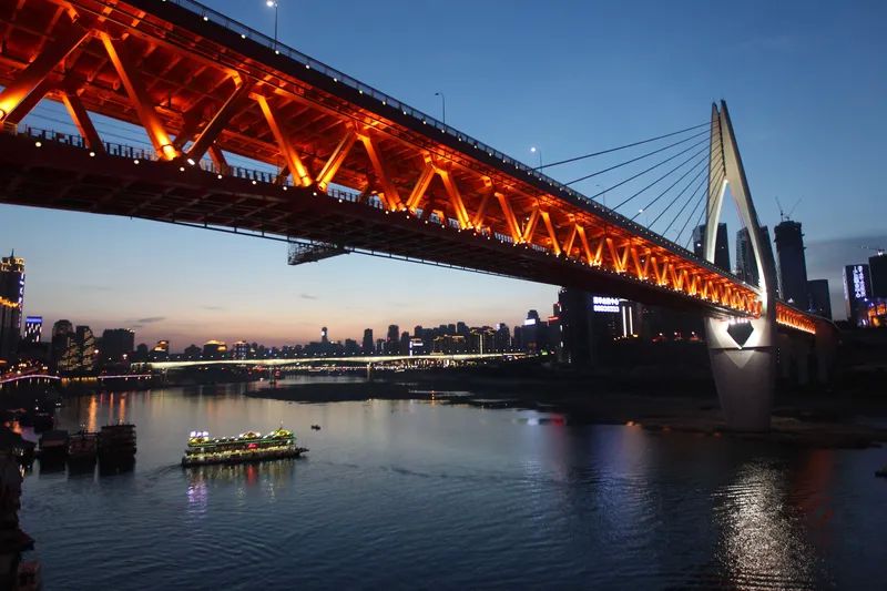 晚上九点最后一班缆车,花20块承包整节车厢。当铁盒子缓缓滑向对岸,脚下是流淌的星河:南滨路的游轮拖出光带,东水门大桥的钢索编织成竖琴,菜园坝立交的车流正进行光轨行为艺术。贴紧玻璃窗按下快门,你会得到一张自带重庆魔幻滤镜的悬浮照。