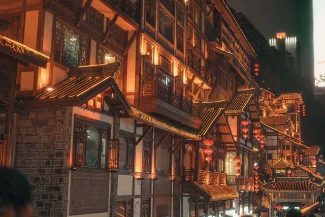 别在景区人挤人!坐轻轨到大剧院站,从江边步道往下走,你会发现整座吊脚楼群正在嘉陵江面演《千与千寻》。晚上八点亮灯瞬间,金色光瀑从11层悬崖跌落江面,用长曝光能拍出流动的液态黄金。建议带瓶冰镇天府可乐——当摆摊大叔的三角架和直播灯海包围你时,这罐汽水能让你在抢位大战中多撑半小时。