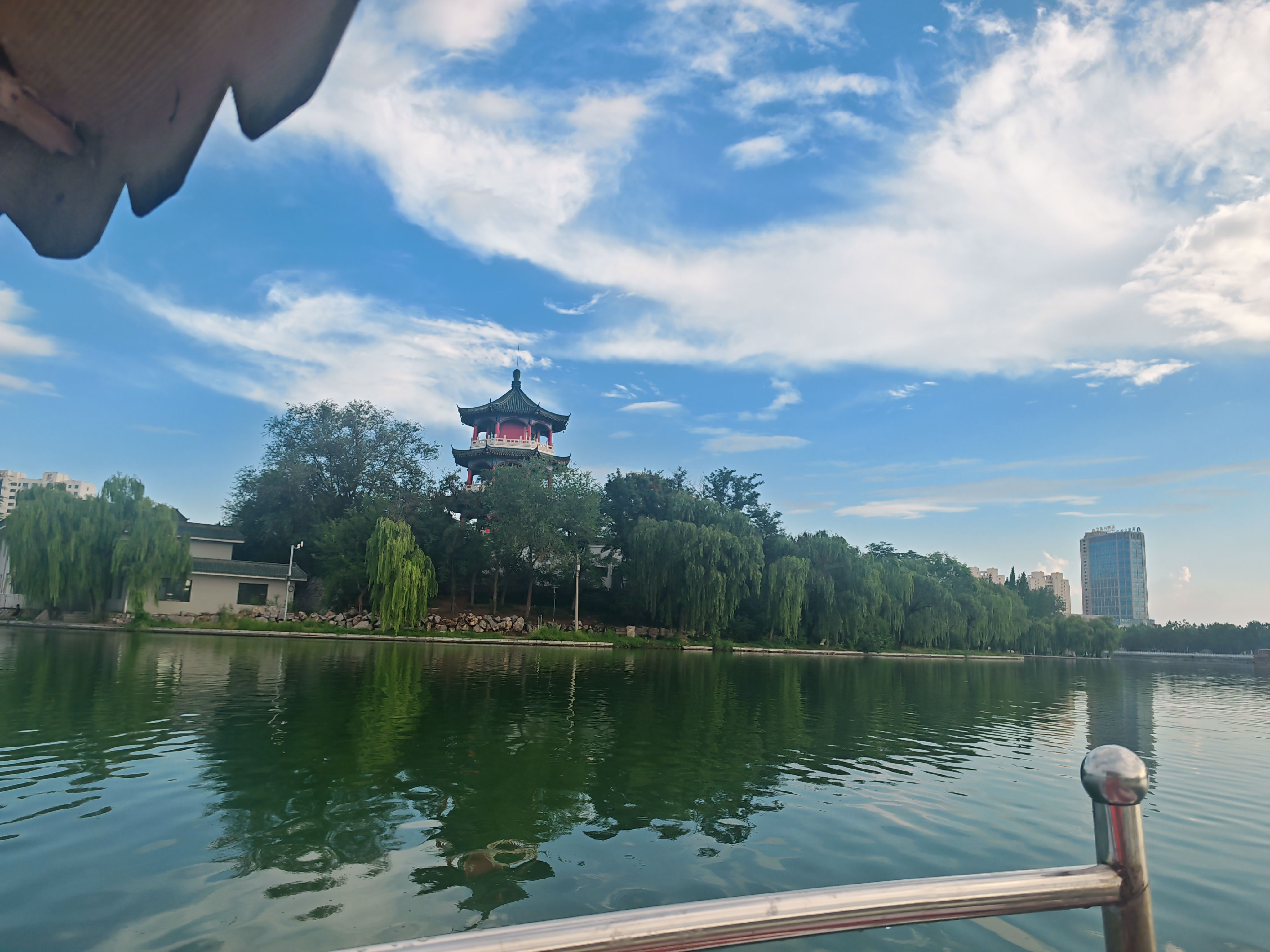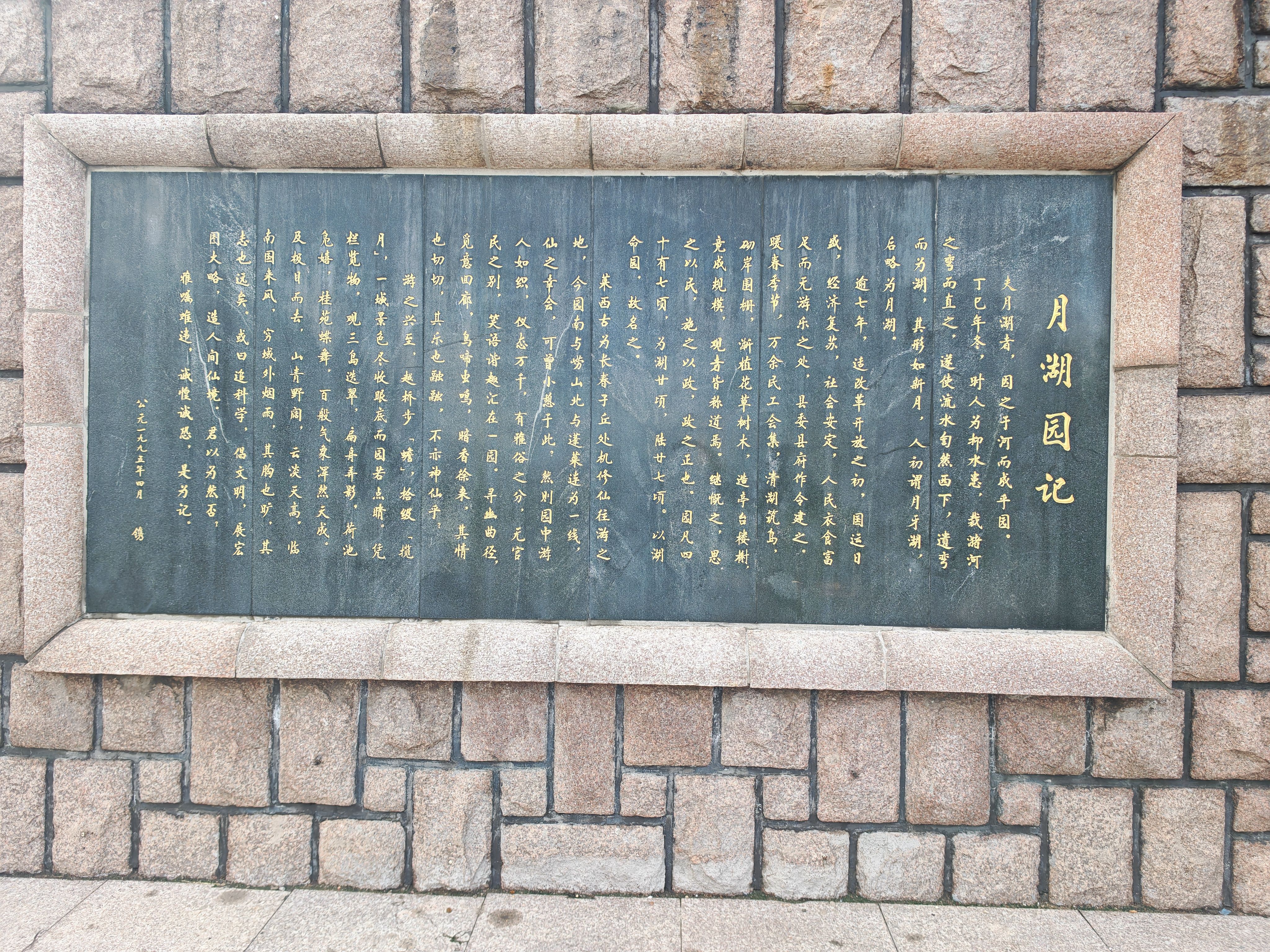 月湖公园有三个主门,北门、南面、西门有停车的地方推荐去这,本次去的南门,停车场进出方便、位置与大小也合适。走到大门有个牌坊,进入后两侧参天的大树,往前走有个大的挡风墙可以来拍照,往里走有个圆形的雕塑,晚上会有灯光,小孩娱乐游玩的地方,再往前走就是树木娱乐设施,有些还没完成安装。再往前走就可以看到一个沿着湖边的走道,湖边很多以前种的树,很多人在这里散步、下棋、乘凉、钓鱼、游玩等,享受自然与城市人文的乐趣;东面有个小湖里面荷花叶全覆盖,再往东面就是河道,里面沿着树下行走遮阳又可以观赏景物和钓鱼的,走在桥上一步一个脚印,每一步都是风景,往北就是以前的松树,里面成为老年人娱乐场所,湖的北面就是道路很多人在边上钓鱼;返回去后再中间分叉的地方租了个船,踏上这次湖中游玩,第一次上去感觉不稳,后面坐在船上还是比较稳,可以停下观看湖中小岛上的植物、野鸡、鸟等,野鸡在水边行走抓小鱼等,还可以把船从桥洞底下游过,围着整个湖边转了一大圈,感受小船的速度与周边景色。靠岸后去里面的小岛上里面的建筑逛了逛,望月塔上有个月湖游记,可惜还没完善好没发上去。