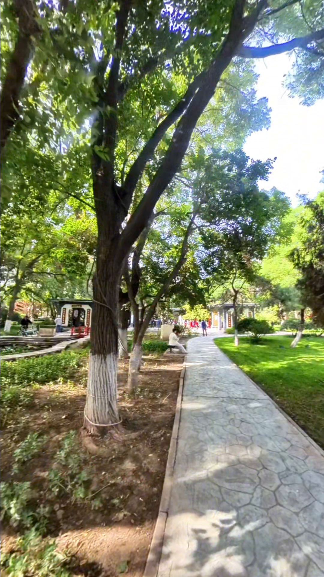 这个公园还是非常大,植被非常好,树还是非常粗。兰州市难得有这么一个大公园,让我们来这转转。兰州市寸土寸金,两山夹一河,又加一城市。在这个地方难得有这么大个公园,市民休闲公园。这就是兰州市市民公园,市民公园就紧邻着黄河。