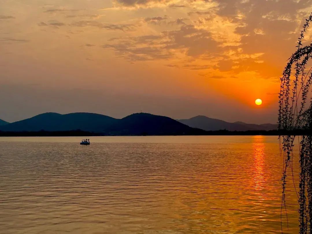 打卡点:湖心岛、音乐喷泉、夕阳湖面