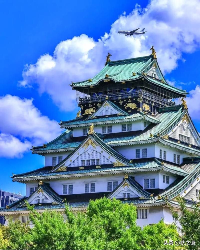 大阪城是大阪的标志性景点之一,夜晚的大阪城在灯光的映照下显得格外神秘而壮观。天守阁灯火通明,与周围的树木、护城河相互映衬,形成一幅美丽的画面。