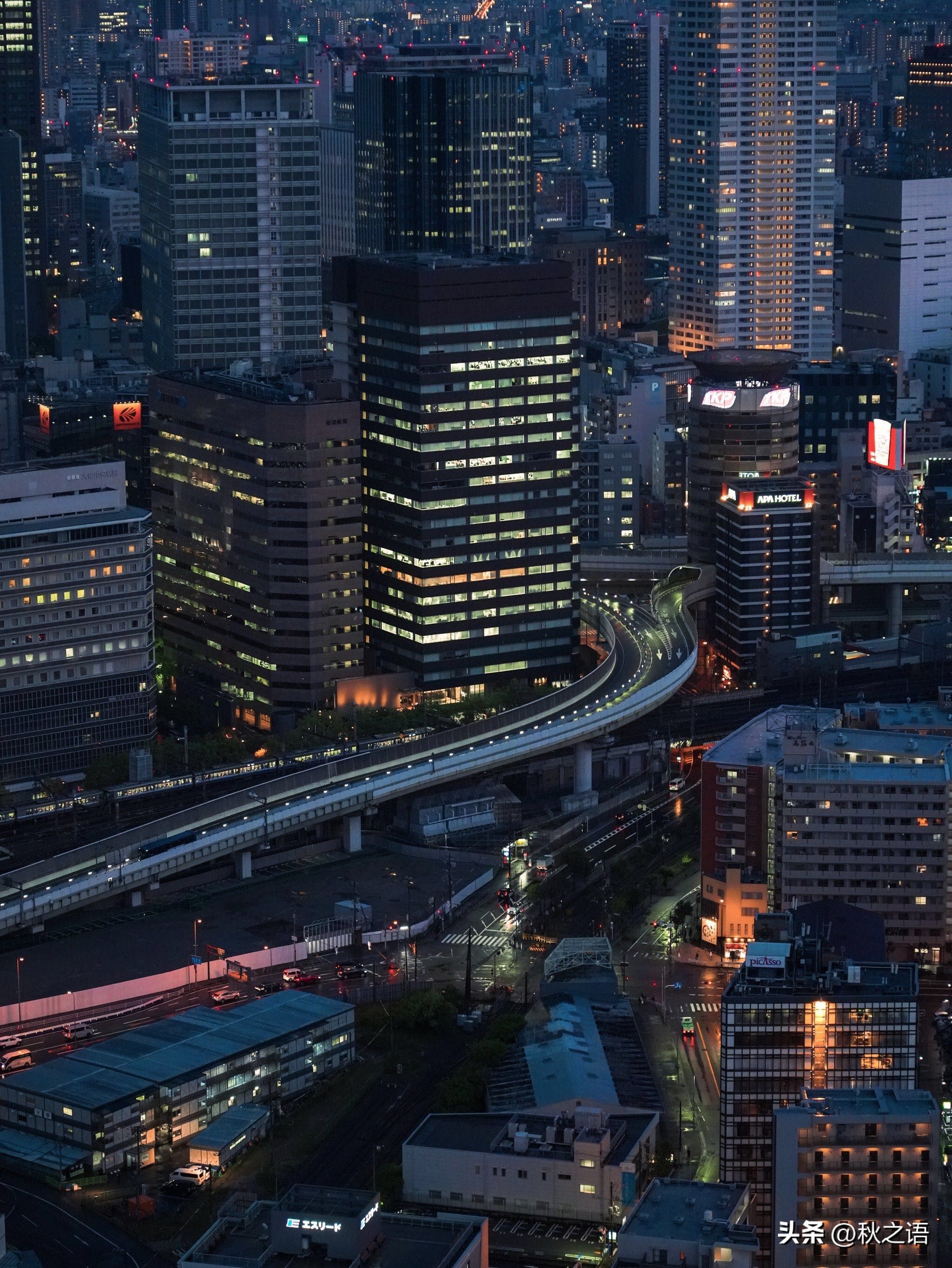 梅田蓝天大厦的空中庭院展望台位于两座大厦的顶部,是欣赏大阪夜景的绝佳地点。站在展望台上,整个大阪市区的夜景尽收眼底,尤其是璀璨的灯光和川流不息的车辆,构成了一幅绚丽的都市画卷。