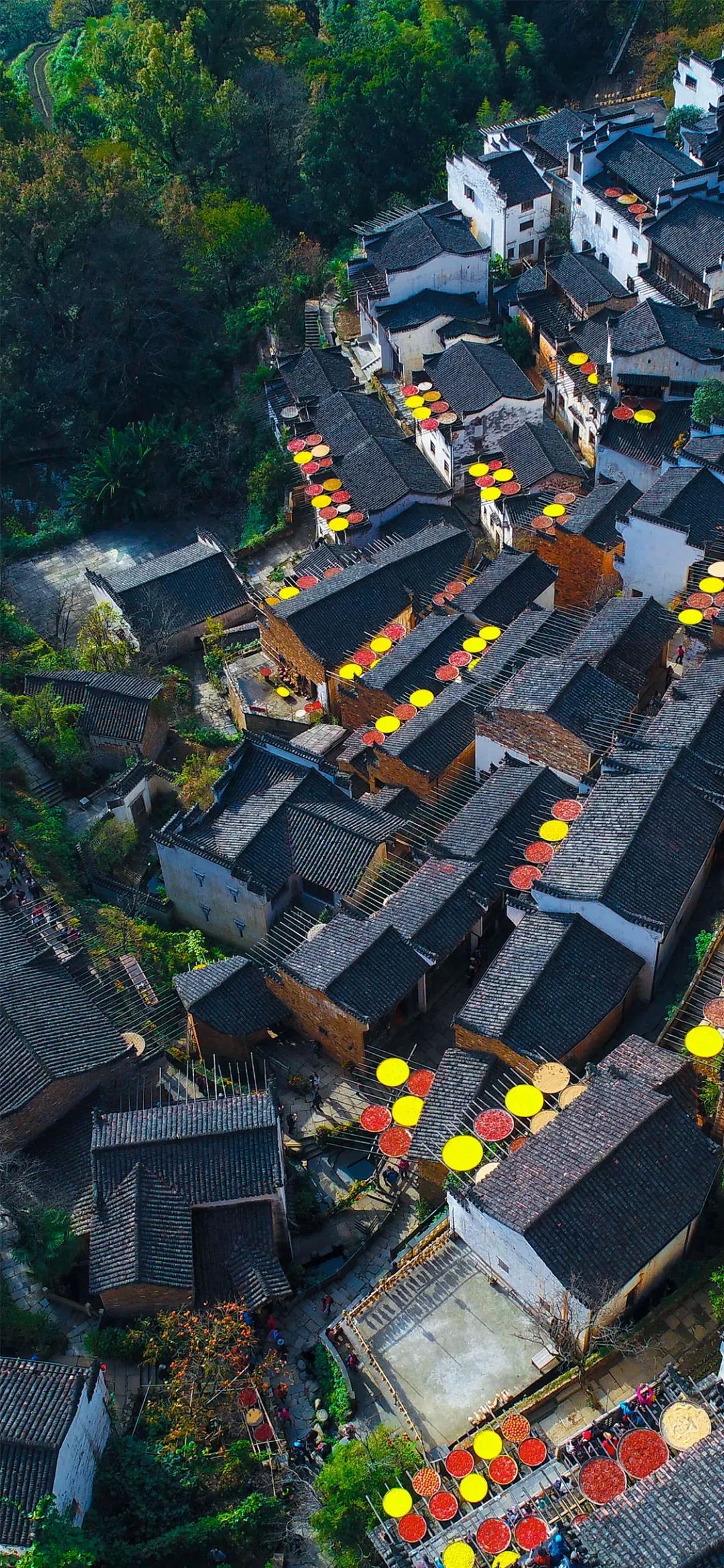 3. 篁岭古镇 :位于婺源县,以晒秋闻名,层层叠叠的徽派建筑与五彩斑斓的农作物构成绝美画卷。春节期间,这里还会举办舞板凳龙、徽州婚俗等民俗活动,婺源传统风俗展示得淋漓尽致。