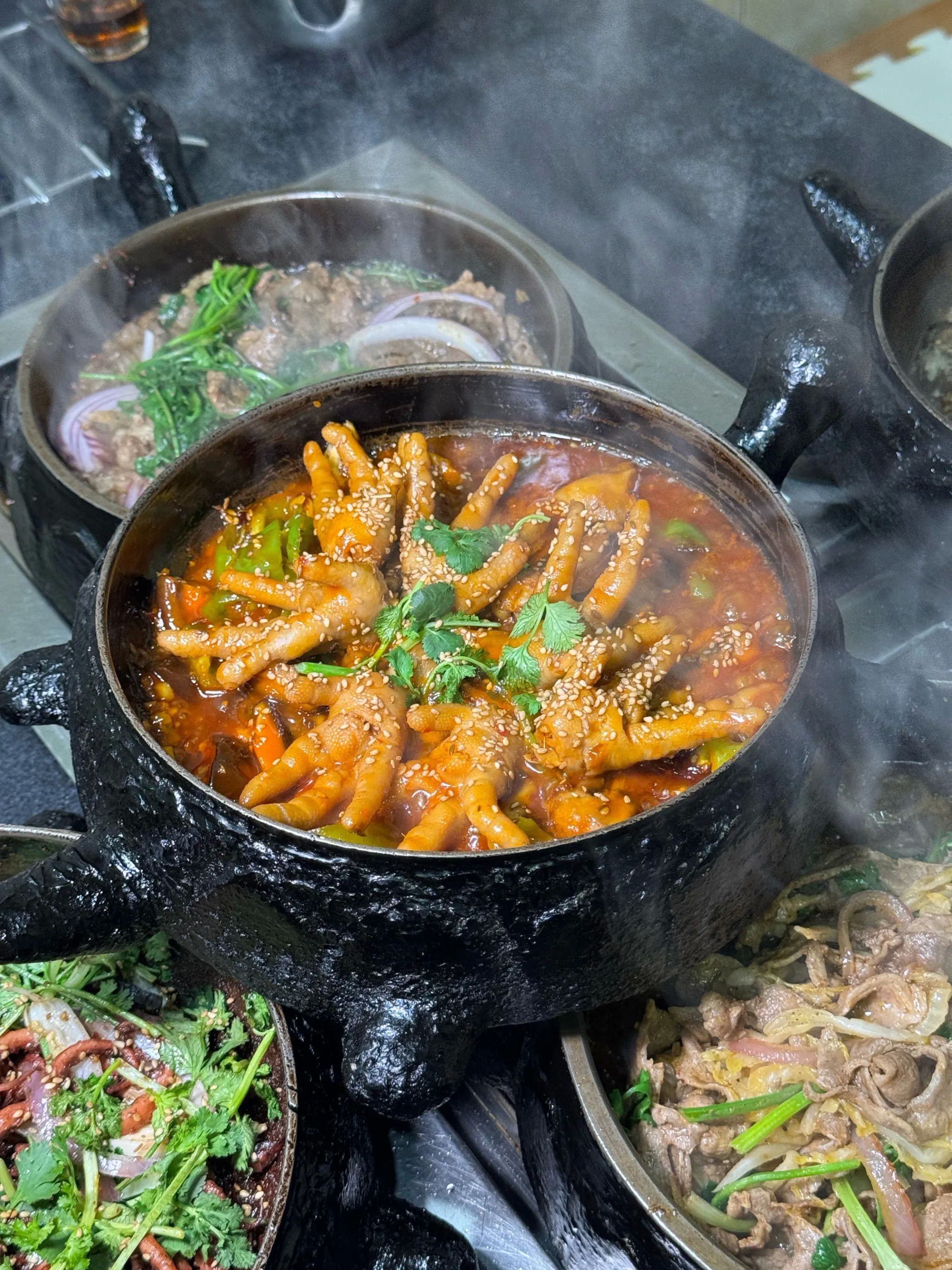 - 酸菜白肉血肠锅:本地大白菜渍足30天,五花肉厚切,血肠用现杀猪血混荞麦面,炖上两小时,酸得清爽,油脂被化解,蘸蒜泥酱油,配东北大米饭,味道绝佳。