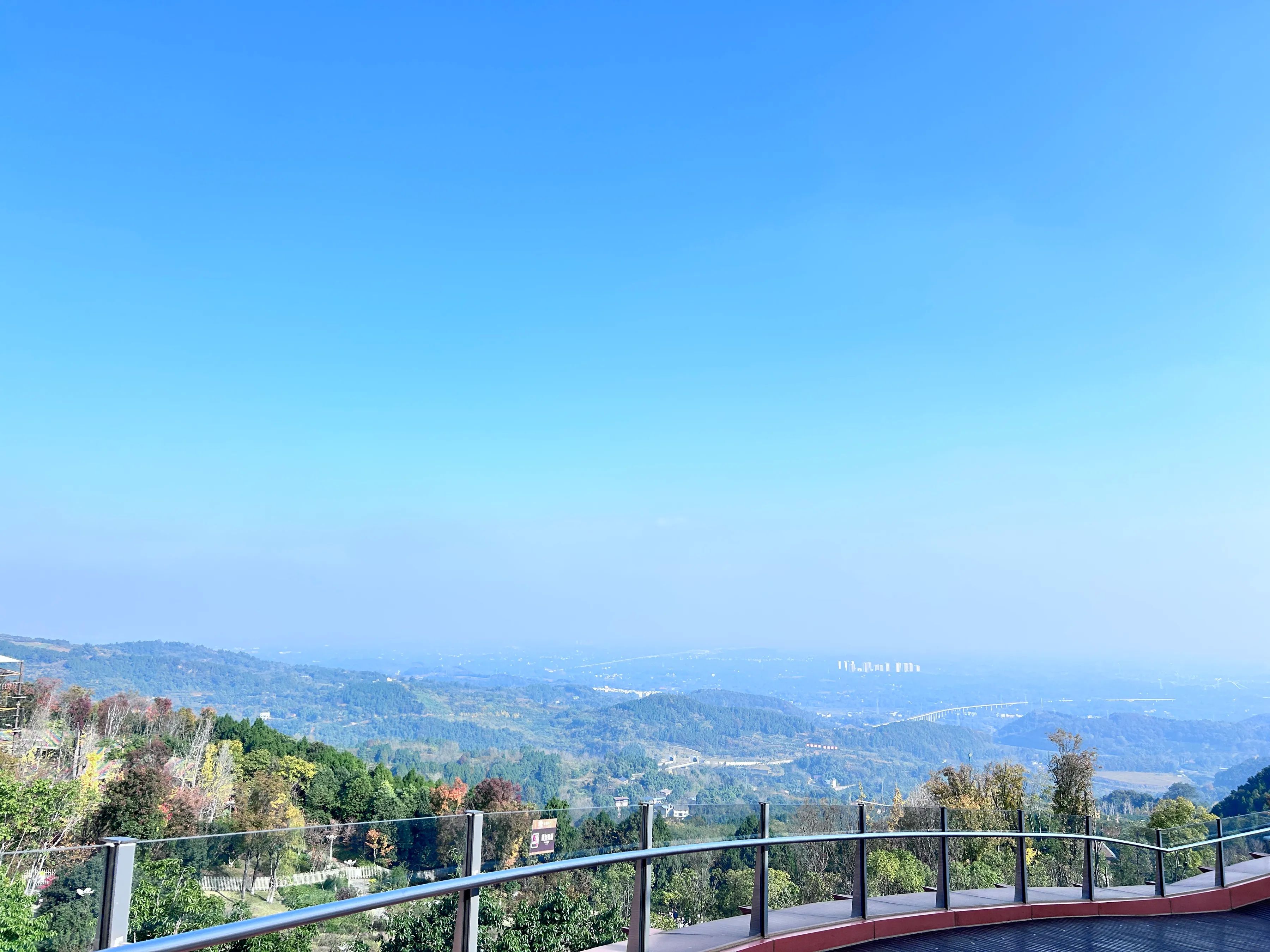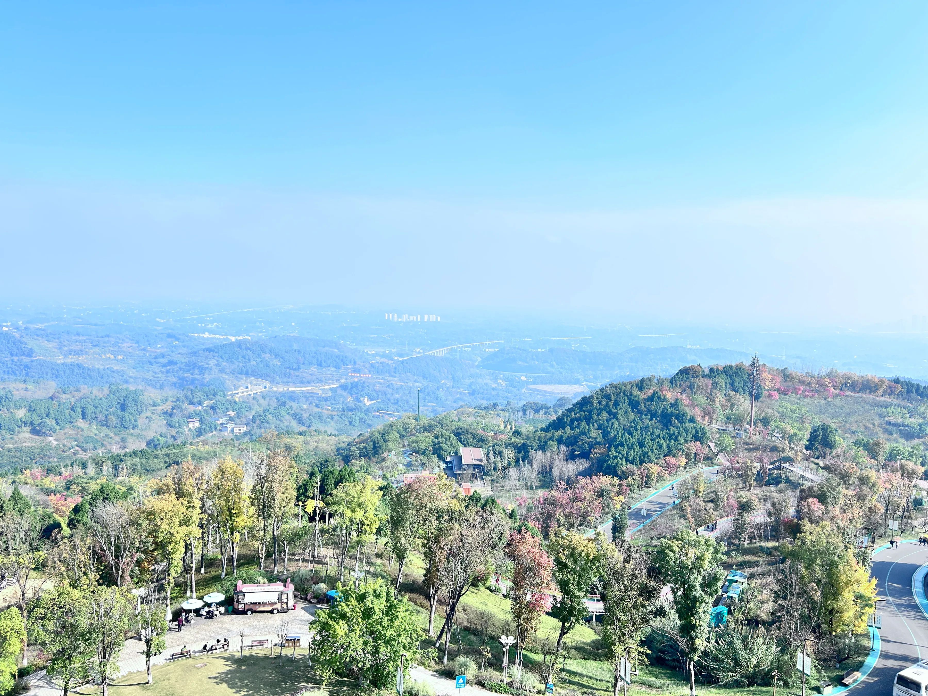 - 山顶视野开阔,可以俯瞰成都平原,天气晴朗时还能远眺成都市区。
