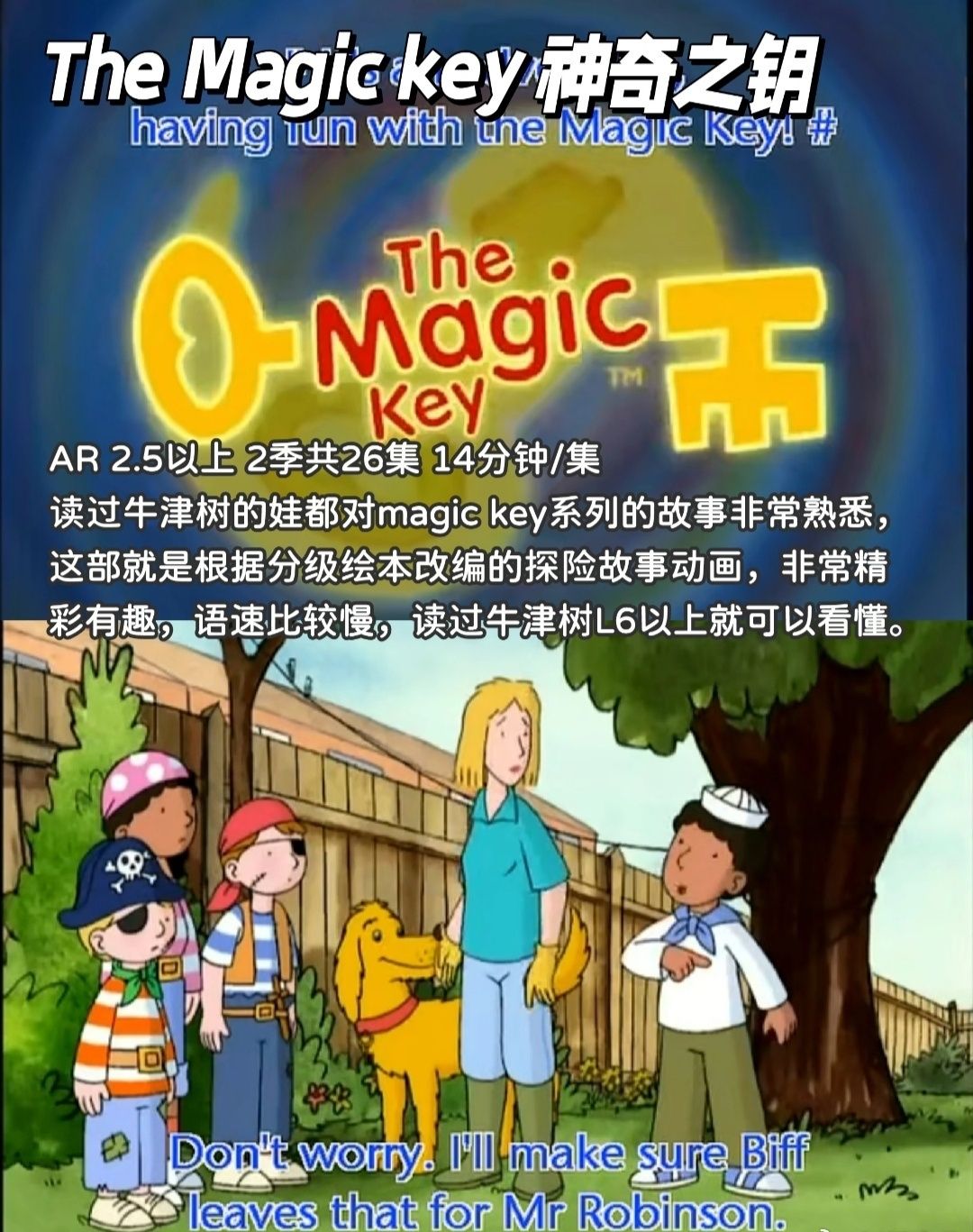 读过牛津树的娃都对magic key系列的故事非常熟悉,这部是根据分级绘本改编的探险故事动画,非常精彩有趣,语速比较慢,读过牛津树L6就可以看懂。