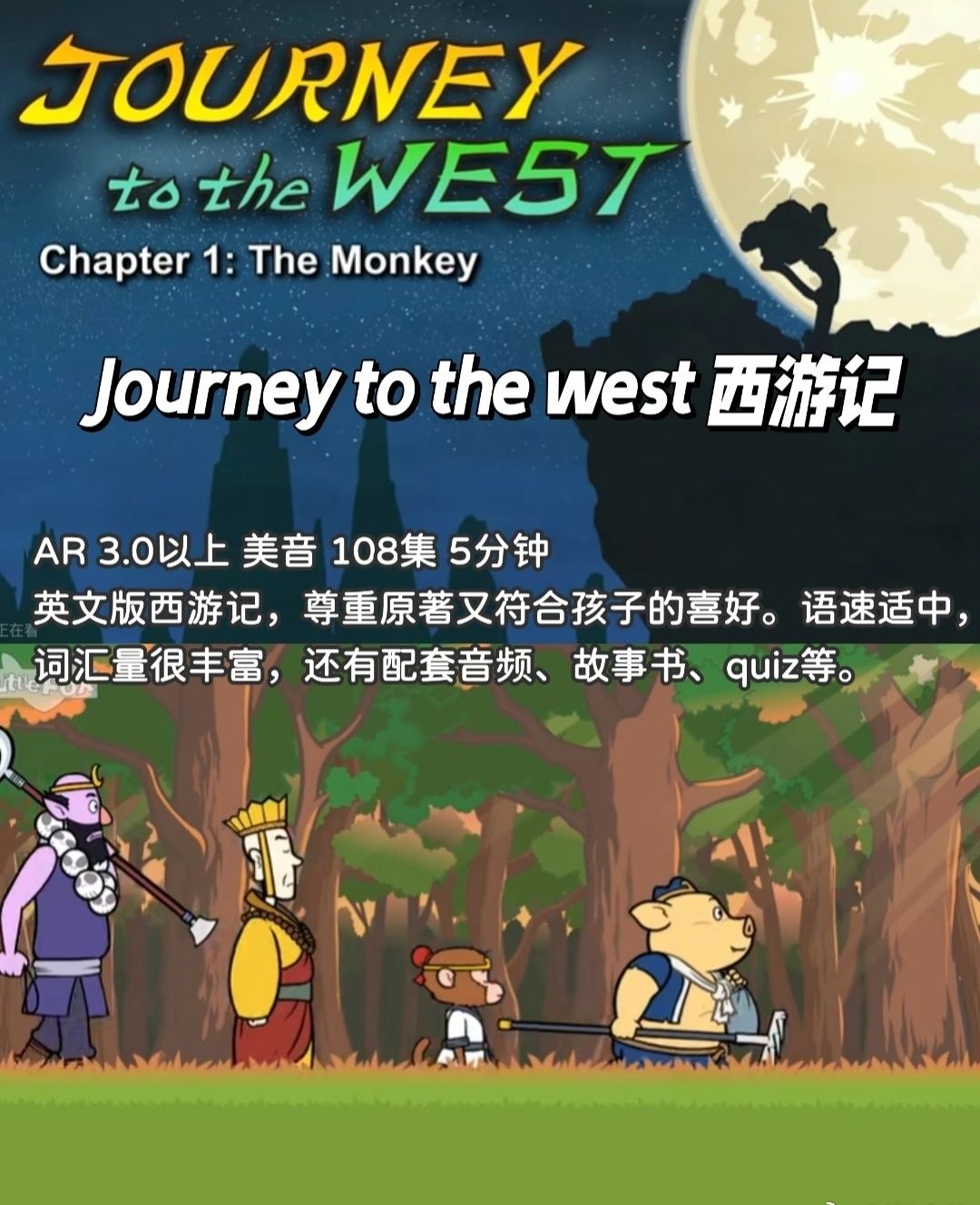 英文版西游记,尊重原著又符合孩子的喜好。语速适中,词汇量很丰富,还有配套的音频、故事书、quiz等,很适合学习用。