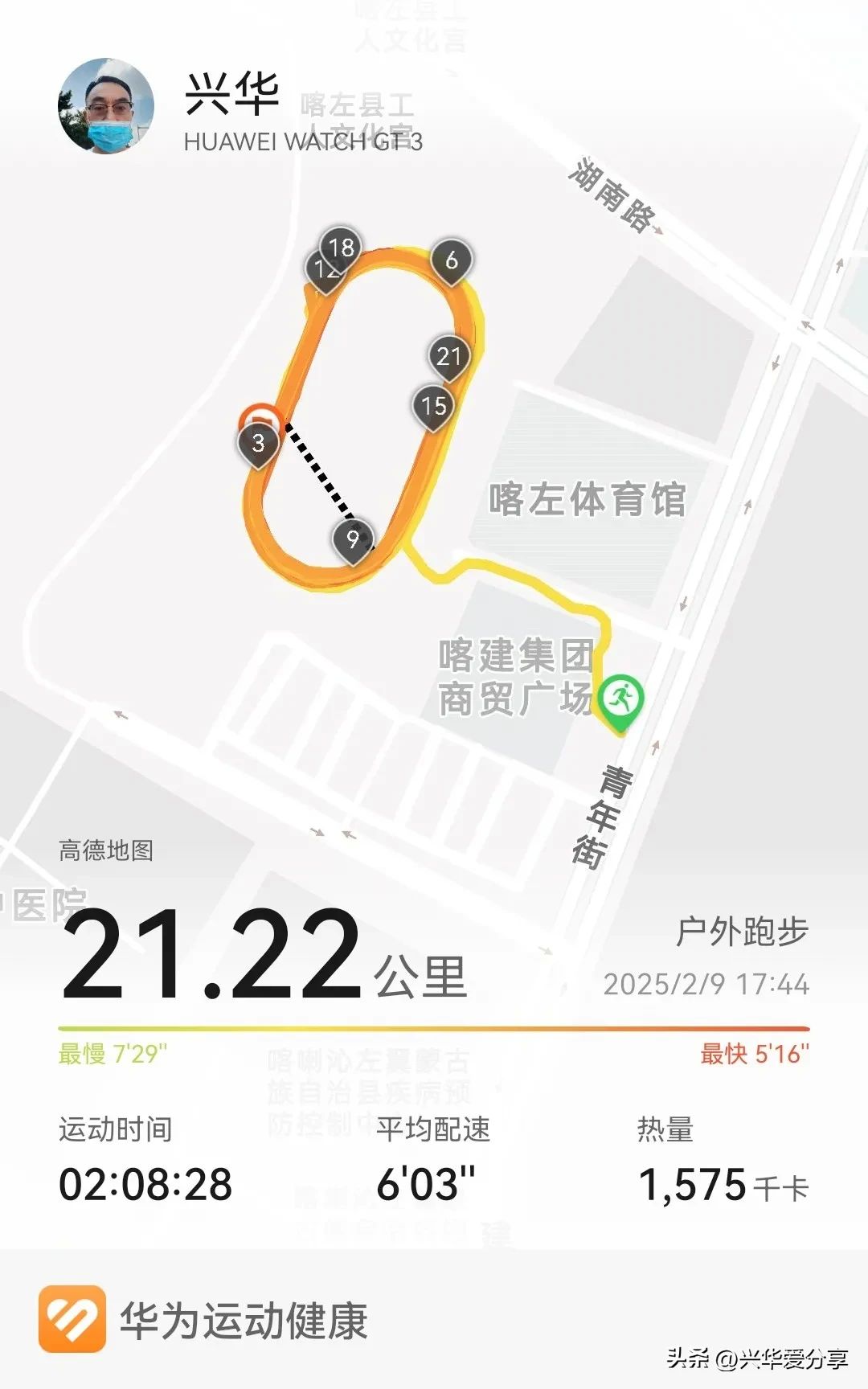 [玫瑰][玫瑰][玫瑰]今日跑步21.22公里,在喀左体育馆塑胶跑道上。