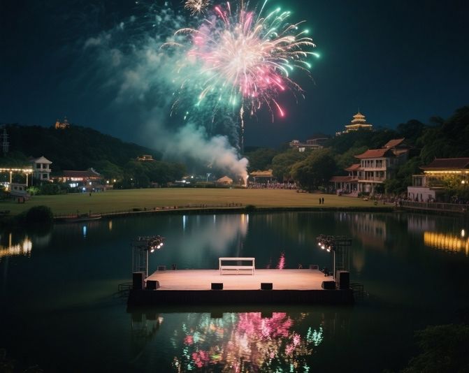 隐贤山庄现在 69 块钱玩一整天!白天在 3D 玻璃桥吓出腿软,转头就能去亲亲动物园喂长颈鹿(胡萝卜 10 块钱一杯)。重点推荐夜场的烟花秀,29.9 元就能看《梁祝》实景演出,烟花在湖面炸开时,连对岸的灯光都跟着闪烁,现场好多人掏出手机拍视频。