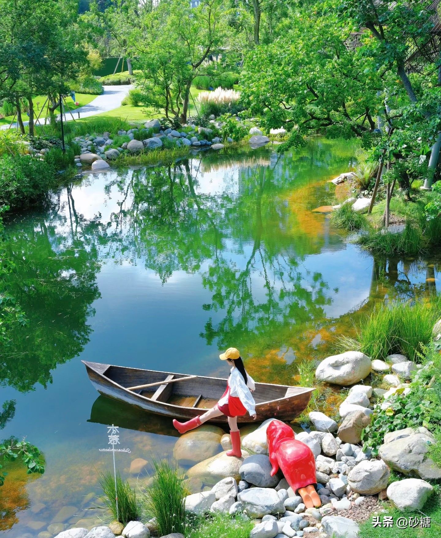 超大片绿油油的草坪连着湖泊花径,免费露营真的太香了!铺块野餐垫晒晒太阳,或者搭个帐篷发呆,惬意到不想走。小朋友更是能撒欢——公园里的蹦蹦床成了娃的快乐天地,随手拍都是满屏笑脸,出片率超高。