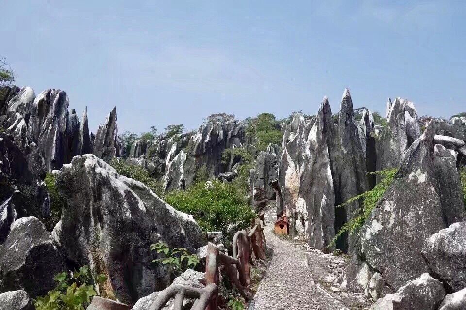 • 玉石林风景区:形成于侏罗纪时代,有100多处景点,独特的石林景观令人称奇,一线通天的景色十分壮观。