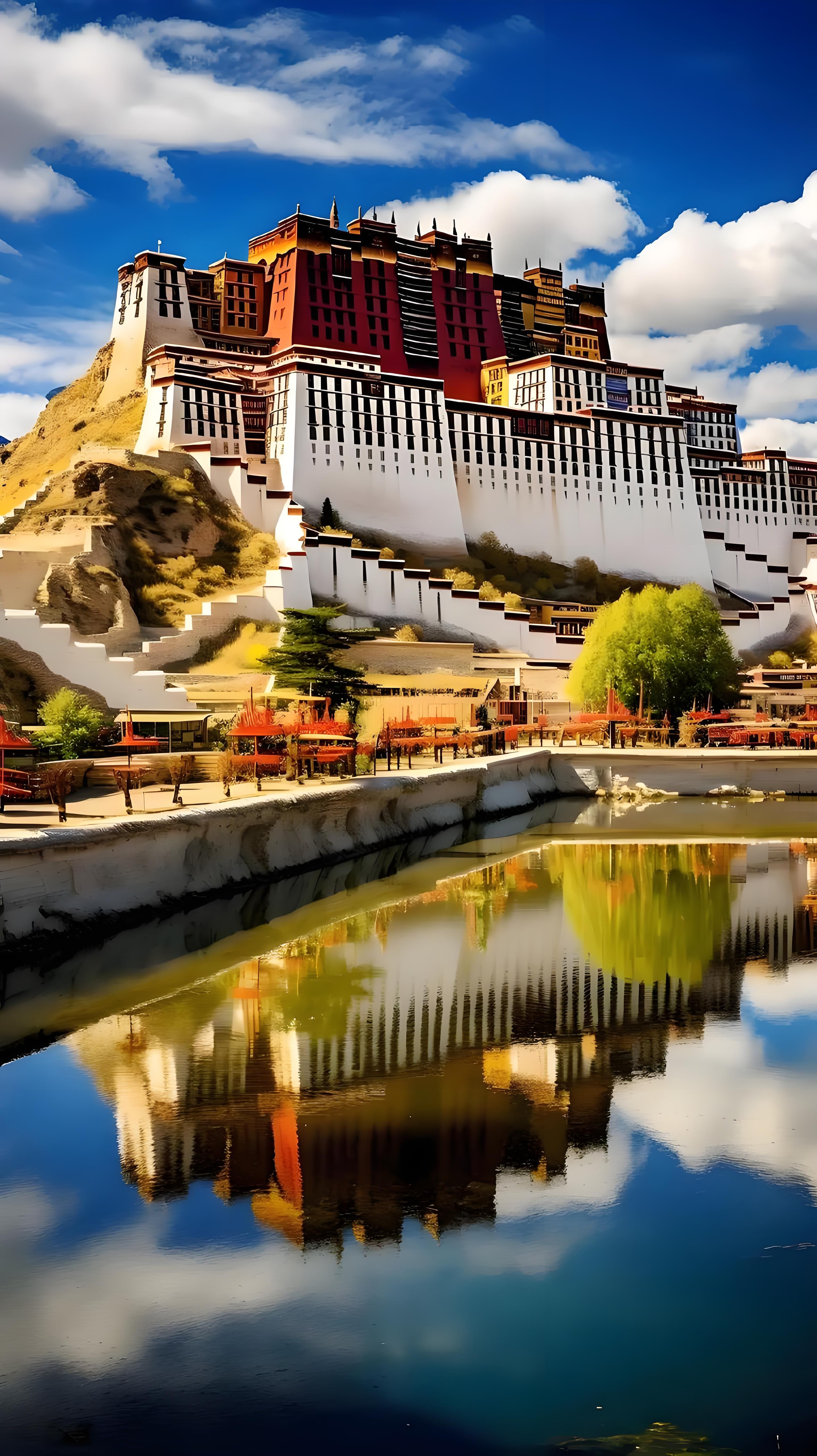 海拔3700米的红白宫殿,依山而建,气势恢宏。傍晚夕阳为九层楼镀金,洞窟壁画千年色彩依旧,飞天飘带似在舞动。朝圣者说:“来到这里,才懂信仰的力量。”