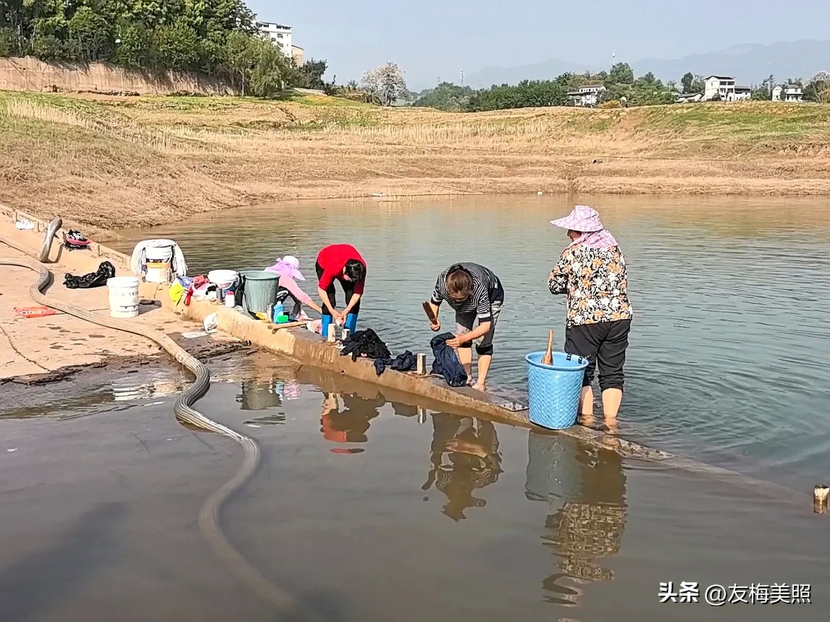 游轮码头有几位大姐正在岸边洗衣服,她们沿用着这种靠流水和敲打的原始的洗衣方式(图9)。