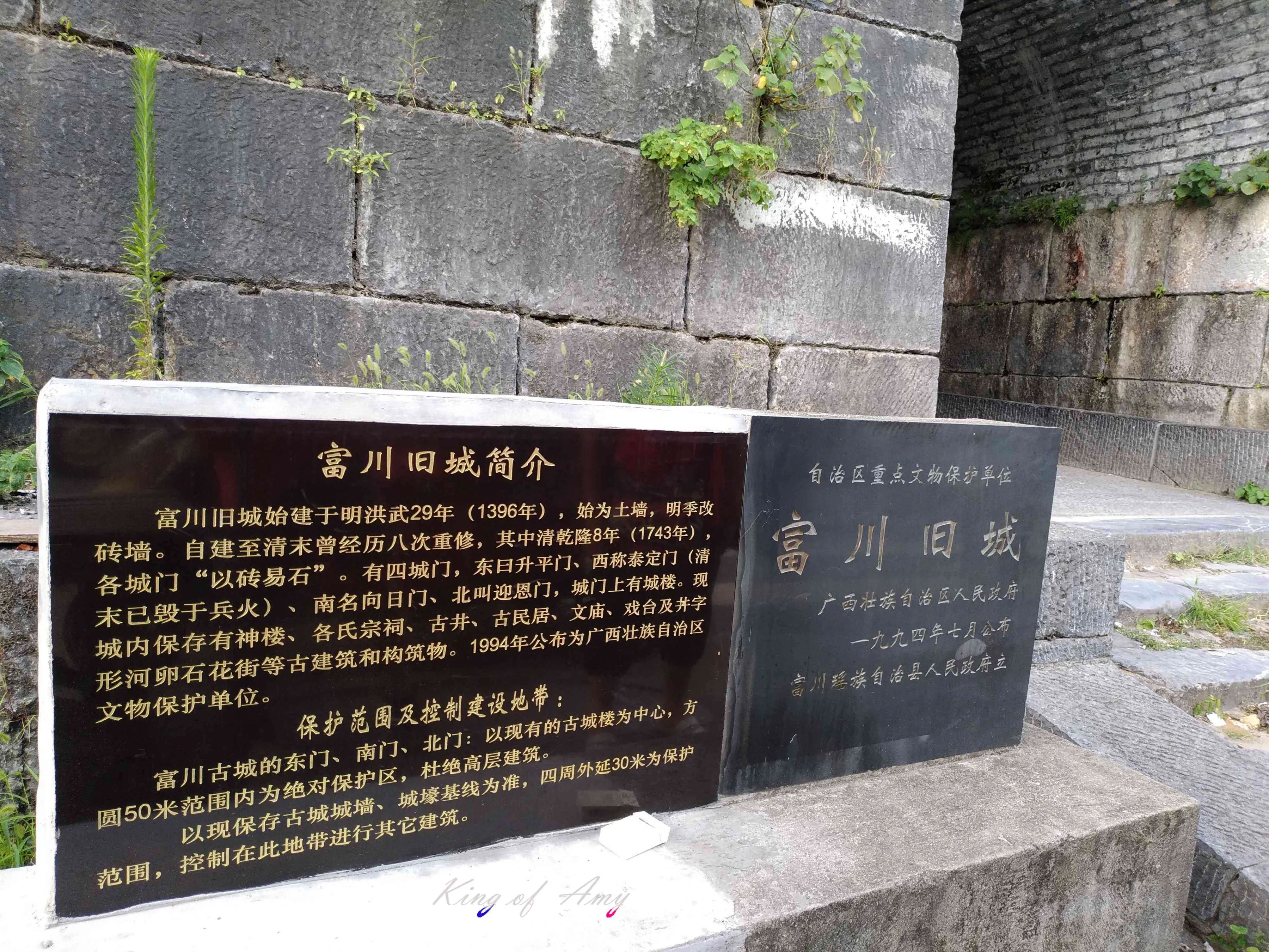 • 富川古明城:位于富川瑶族自治县都庞岭余脉的西屏山下,是广西保留较为完整的古县城遗址之一。城以“十”字架对称,街道由鹅卵石铺成,镶嵌有象征钱财、富贵的金钱图案等,这里也是沟通岭南与岭北的潇贺古道的一部分。