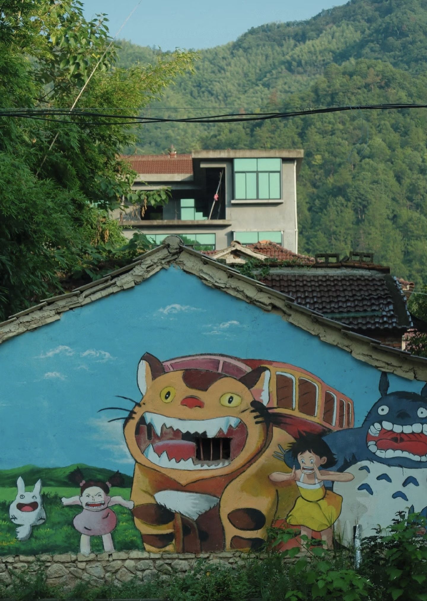 石雅村在永康市前仓镇,从城区出发,开车大概20公里就能到。一走进村子,我就像走进了宫崎骏的童话世界。村里到处都是墙绘,金黄的稻田、满塘的荷花、可爱的龙猫,每一幅都画得超生动,据说是永康六中的美术生们的作品,给这个古朴的小村增添了不少艺术气息。