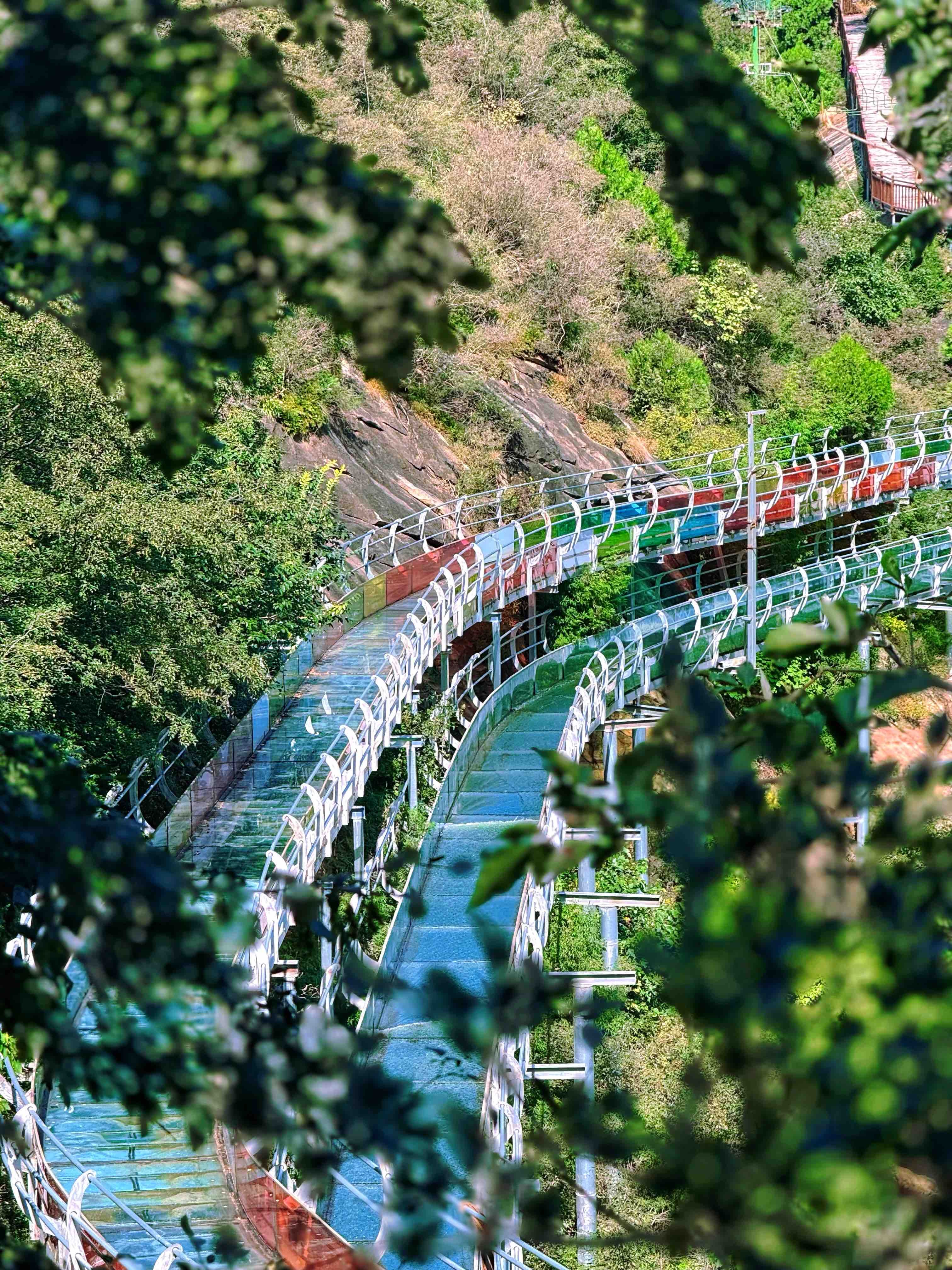清凉谷的高山滑水项目,将带你穿越林海峡谷,在2公里长的蜿蜒滑道中急速俯冲、旋转漂移,仿佛乘风破浪于碧波之上。