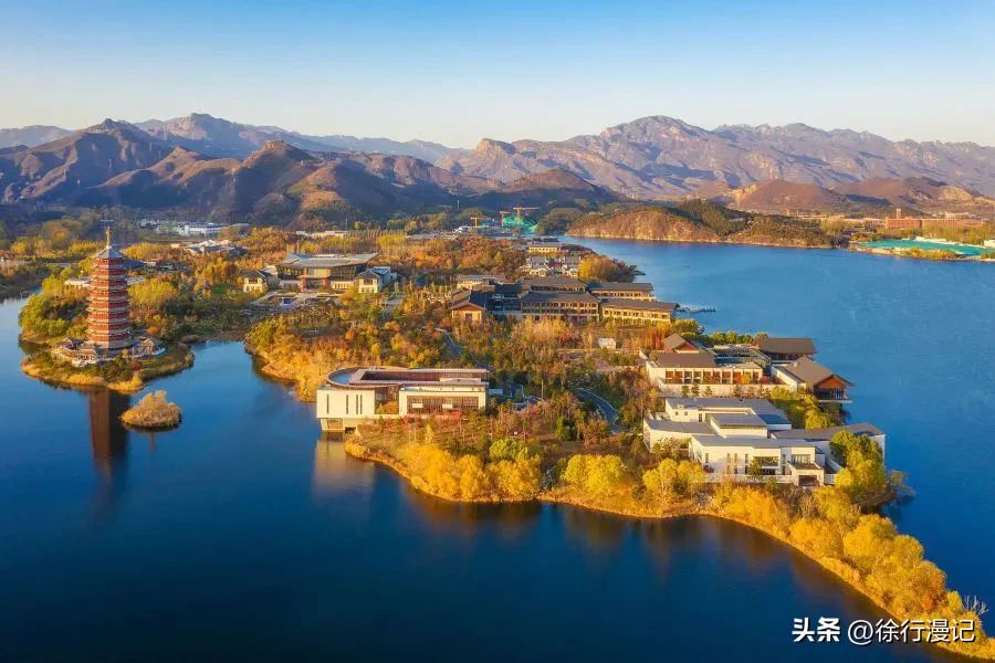 雁栖湖位于怀柔城北,北临万里长城,南偎华北平原,风景优美。这里是一个风光旖旎的水上乐园,适合体验水上娱乐和欣赏自然风光。