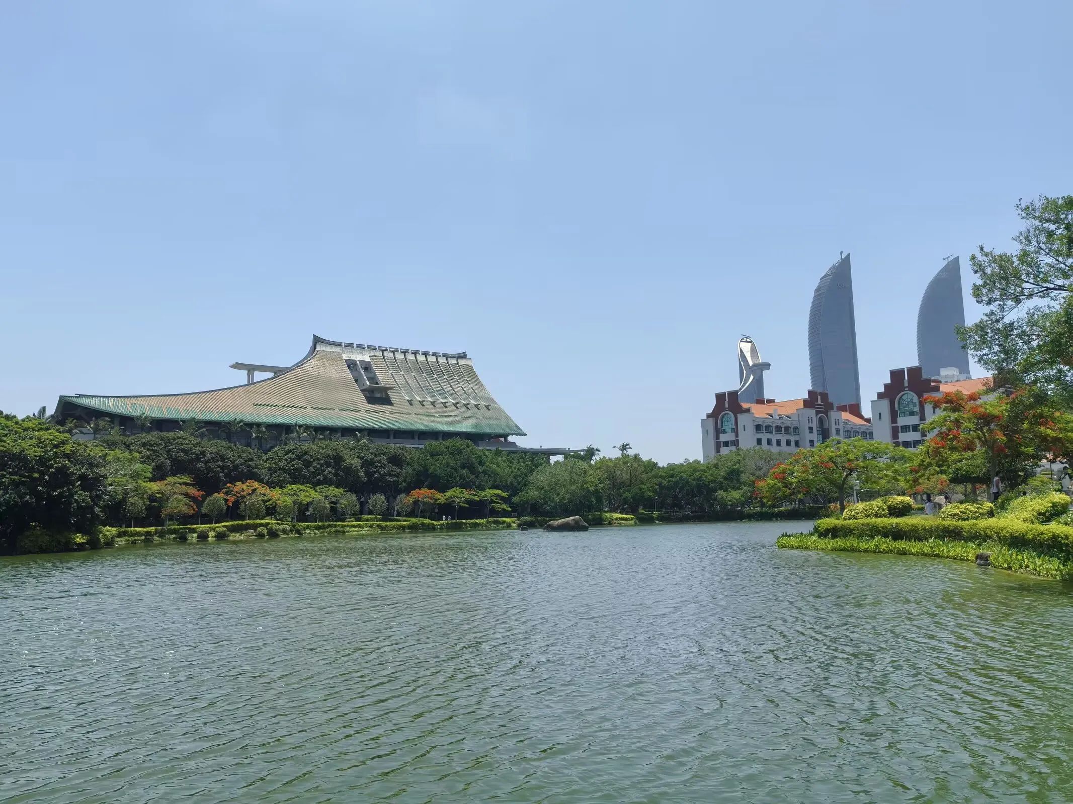 首先踏入期待已久的厦门大学,那感觉就像是走进了一座知识与美景交融的殿堂。厦门大学,这所闻名遐迩的高等学府,处处散发着独特的魅力。而芙蓉湖,无疑是其中的一颗璀璨明珠。站在湖边,那景色简直绝了。湖水清澈得如同镜子一般,将周围的绿树、红墙建筑都倒映其中。微风轻轻吹过,湖面上泛起层层涟漪,仿佛是一幅动态的画卷。