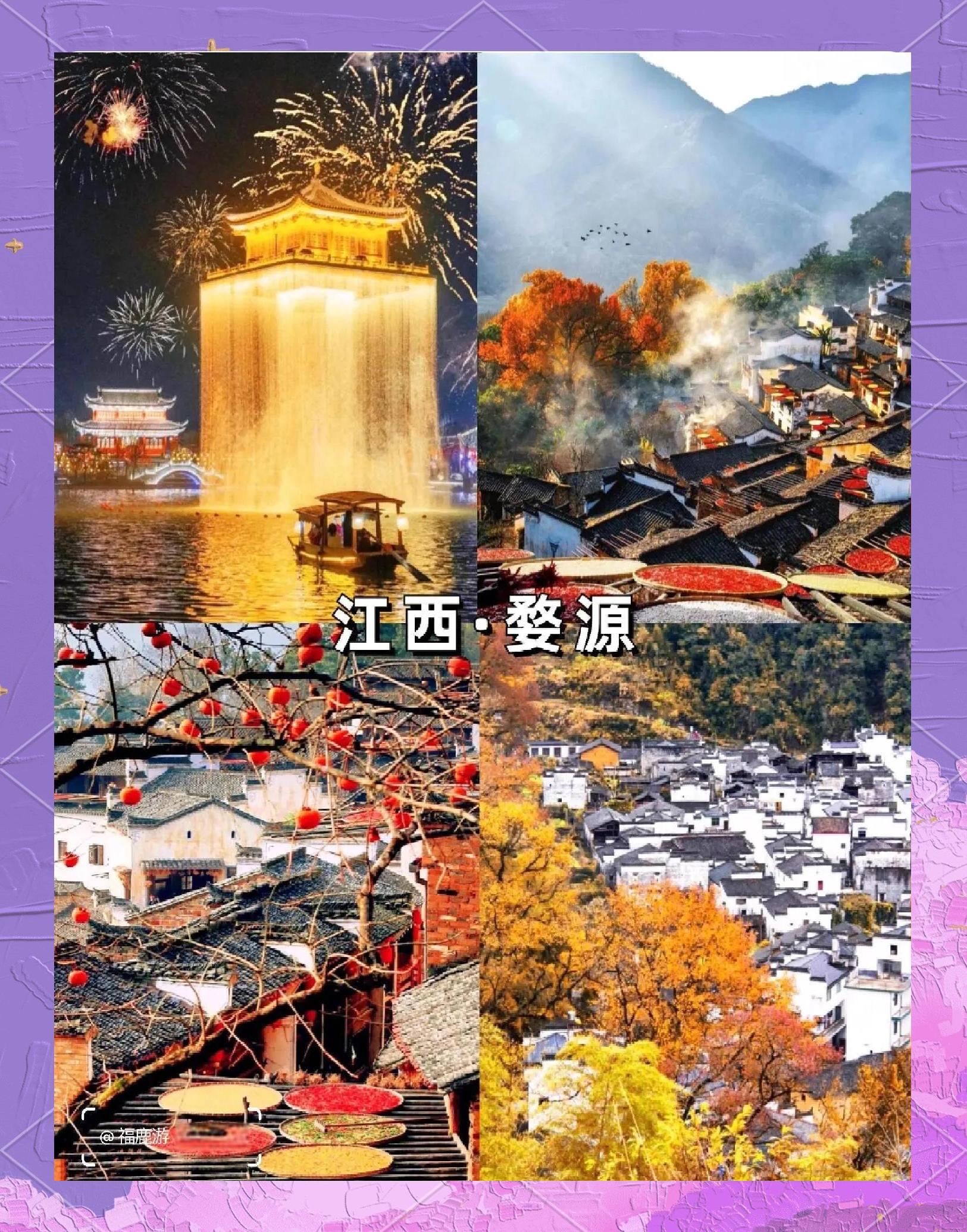 江西婺源的秋天以篁岭晒秋为核心景观,搭配红枫、古村、梯田等元素,形成层次丰富的视觉盛宴,最佳观赏时间为9月下旬至11月中旬。